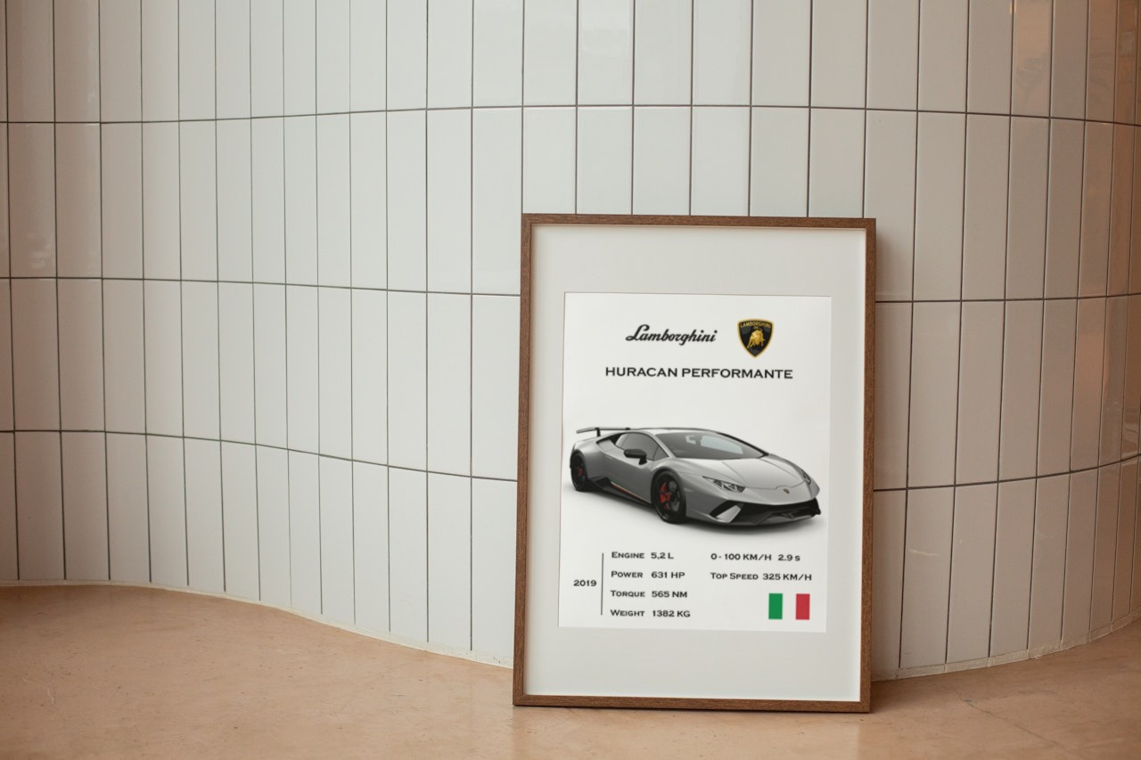 Whether you're a devoted enthusiast or simply appreciate automotive artistry, our Lamborghini Huracan Performante digital poster is a striking addition to any space.