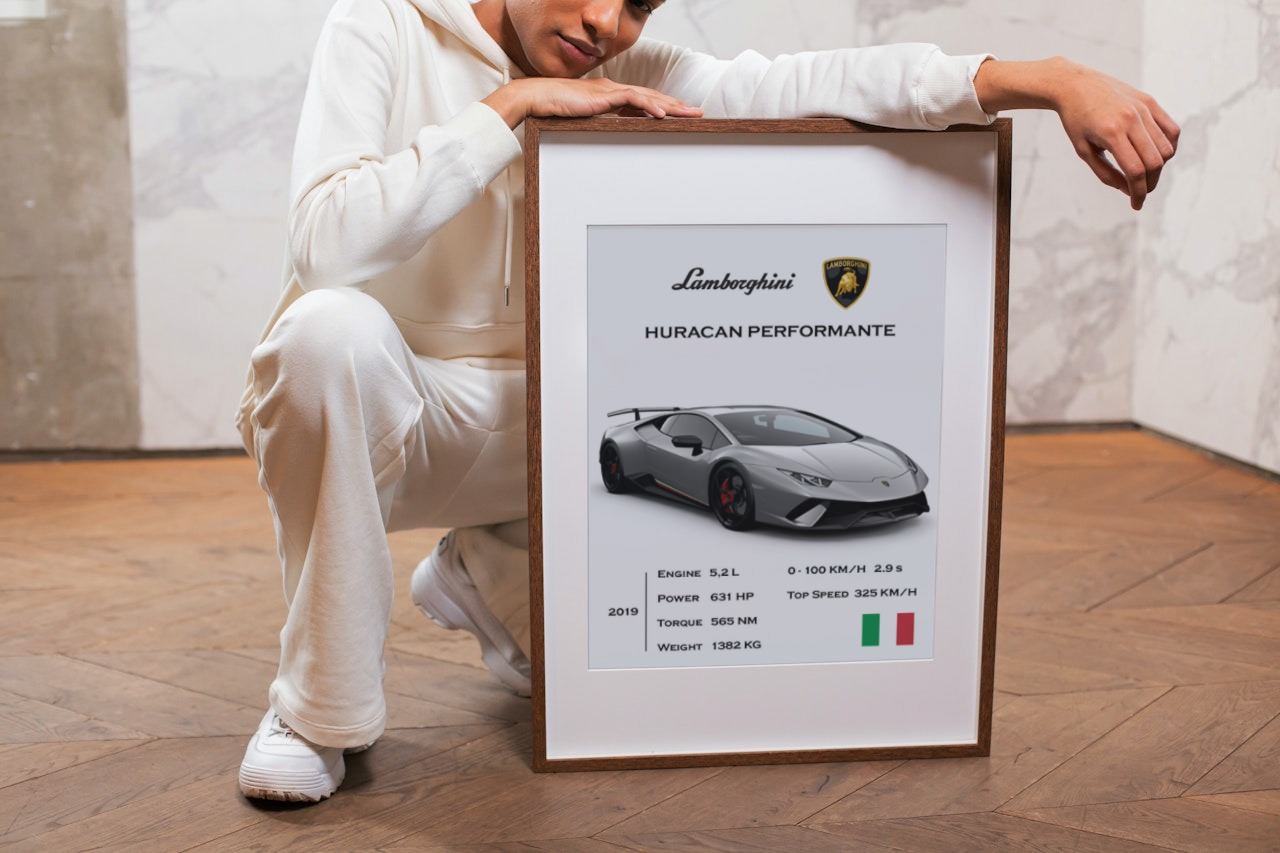 Feel the adrenaline rush with our digital poster featuring the Lamborghini Huracan Performante.