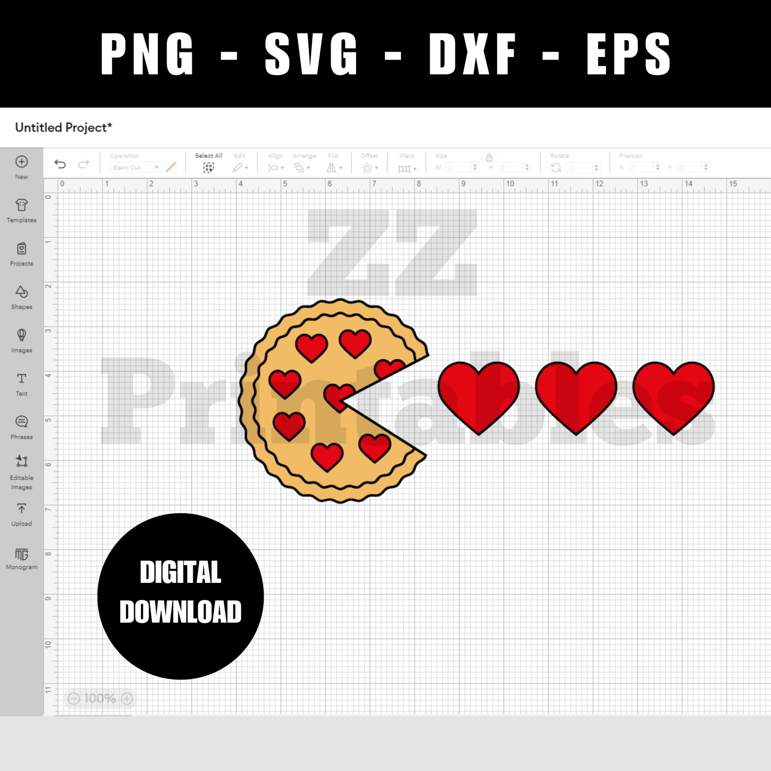 Funny Valentine's Day dessert strawberry pie and red hearts sublimation PNG EPS Cricut SVG DXF Silhouette cut files instant digital download. You will receive 1 hiqh quality PNG file (300 dpi) and 12" x 12" in size, 1 SVG file, 1 DXF file and 1 EPS file .
