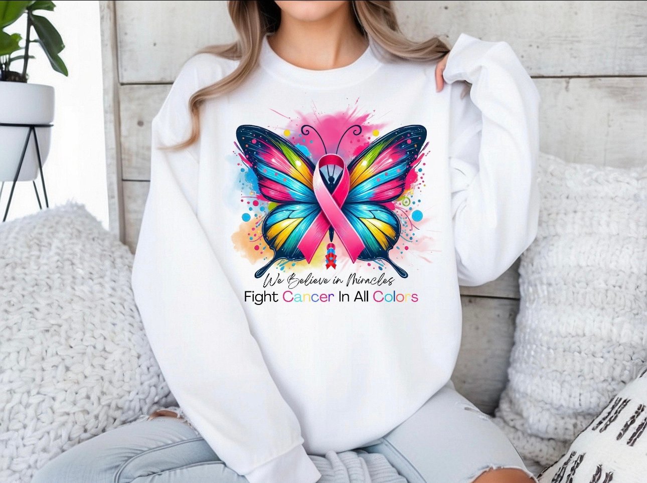 Show your support in style with this " fight cancer in all colors" sweat shirt. This sweatshirt is made of soft and comfy cotton and is ideal for raising awareness and demonstrating solidarity. Whether you're at a charity event or just going about your day, this sweat shirt is a stylish way to make a meaningful statement.
