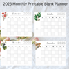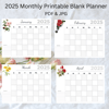 This is a Digital Print of a 2025 blank calendar in PDF format and a Jan.Zip file with all the individual JPG of each month. Each calendar is decorated with Vintage Floral art. There is also a small section for you to write a To Do List.