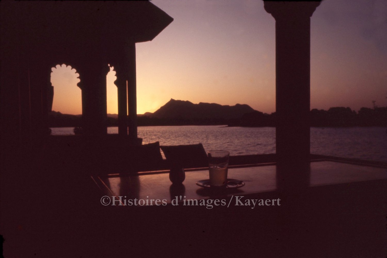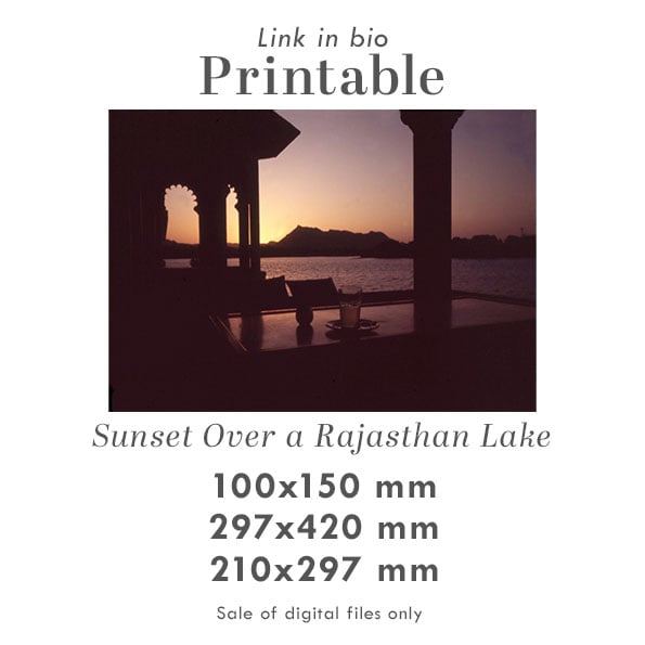 Capture the serene beauty of India in 1969 with this vibrant vintage photograph of a sunset over a tranquil lake in Rajasthan. Bathed in warm golden light, the scene reflects the timeless charm of the region’s landscapes — a perfect blend of nature’s stillness and vivid color.