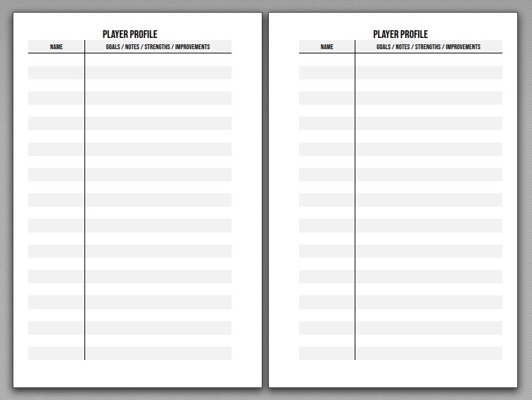 - Jot down player profile, goals, strengths, weaknesses and improvements