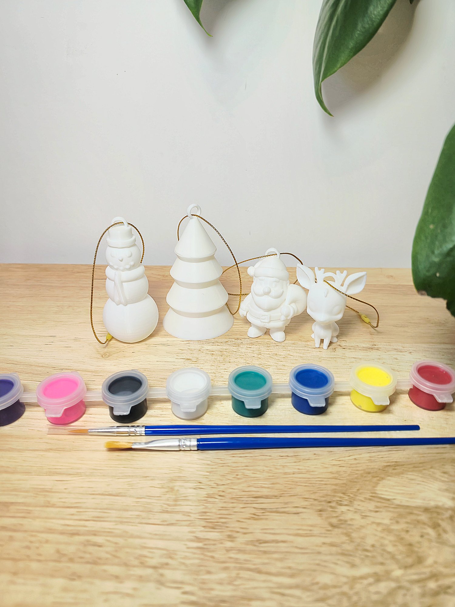 Get into the festive spirit with this Paint-Your-Own Christmas Ornament Set! Featuring Freddy the Snowman, Santa, Finn the Reindeer, and a Christmas Tree, these charming little figures are perfect for creative fun over the holidays.