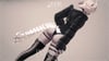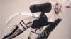 A bodysuit with squishy garters and a fluffy/puffy jacket + choker.
