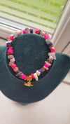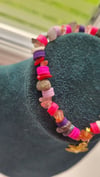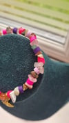 Dive into a sea of colour and creativity with this eye-catching statement bracelet! Featuring a bold mix of natural crystal chips and vibrant clay beads, this piece radiates playful energy and earthy charm. Each crystal chip is carefully chosen to bring a unique blend of textures and tones, while the pops of pink, purple, and coral from the clay beads add a punch of personality.