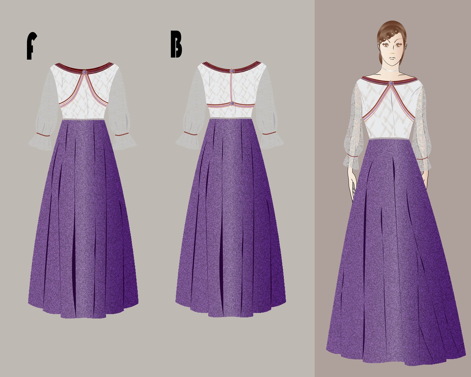 Stain your summer with a couple of crimson and violet clothing from "Illustration of Crimson/Violet Clothing 2021 Collection". The illustration comes with a total of 3 designs. The first design is a long violet floral embroidery shirt and crepe trousers with yellow beads decoration. The second design is a ruffle collar crop top with long flounce sleeves and long violet skirt decorated with diamond style swatch sewed together with inner red net lace skirt. The third design a long violet A-line gown with floral lace sleeves and deep neckline decorated with bead chains. The details, front and back view of each garment is available in the digital file. The illustration is available in both PNG and 5 page PDF format.