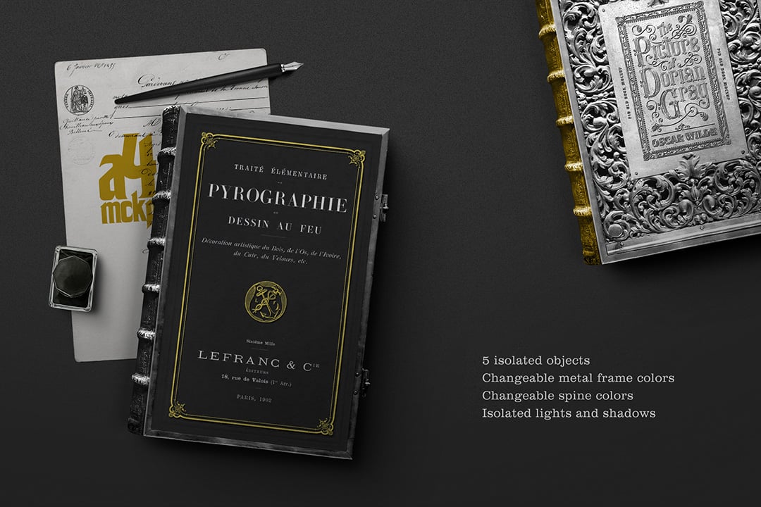 Book Mockup - Old Antique Metal Cover Set (5 Objects)