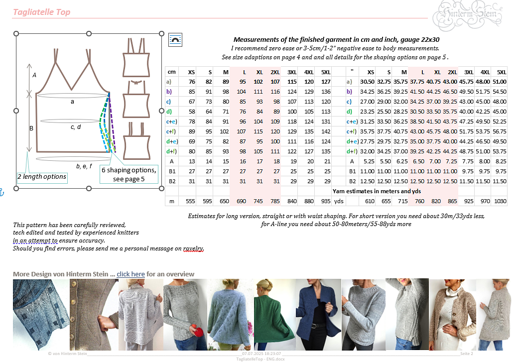 Tagliolini is the little sister-pattern of Tagliatelle - knit in fingering weight yarn and with a few differing details- and will be published in 2-3 weeks (if you purchase Tagliatelle now, you will receive a notification and link for the free download).