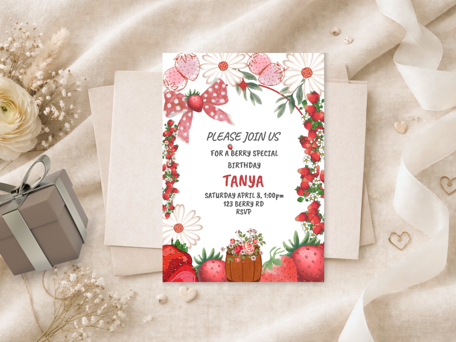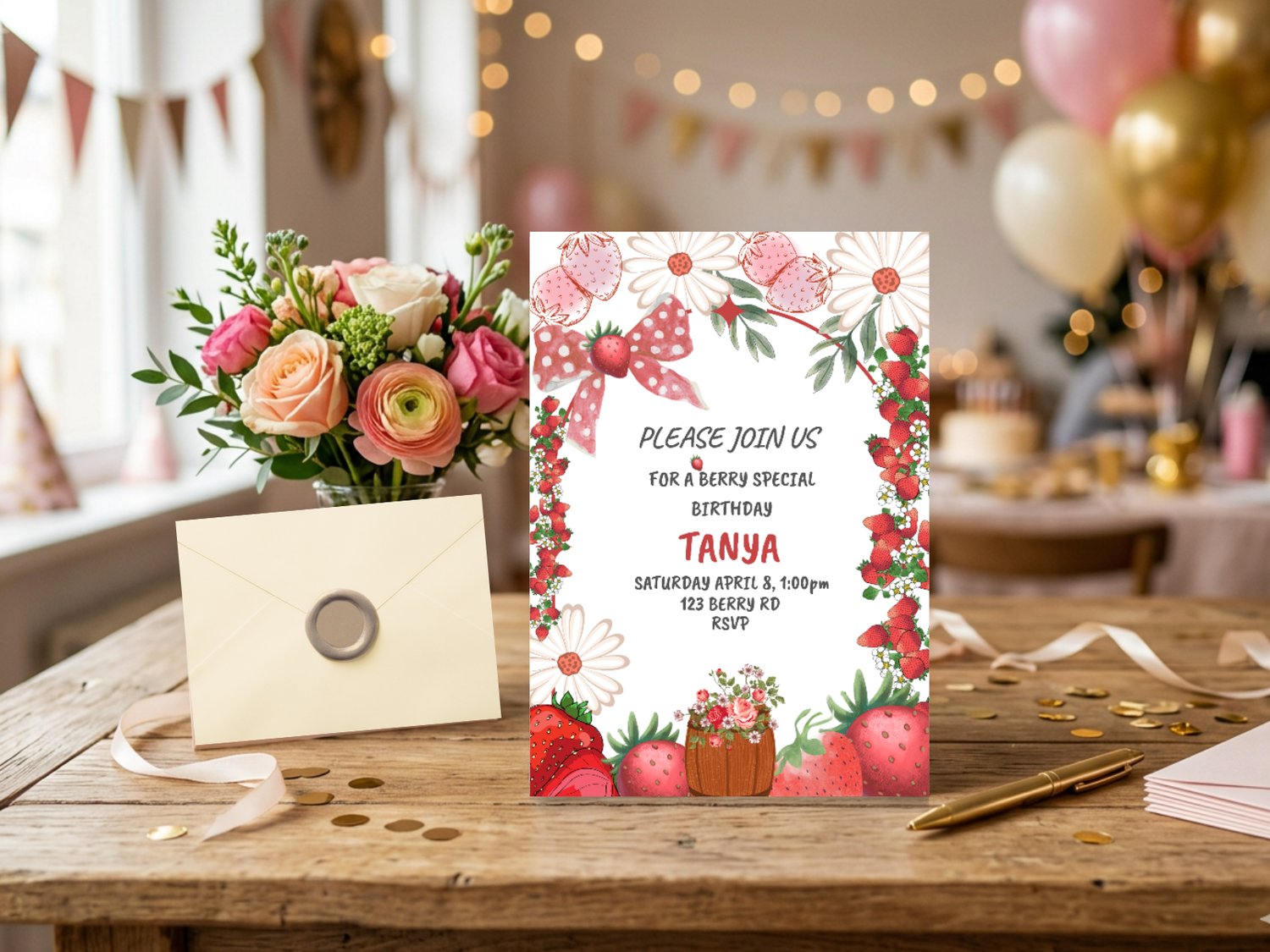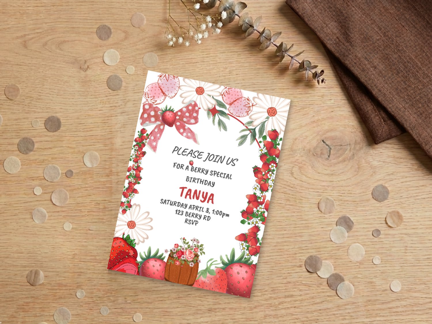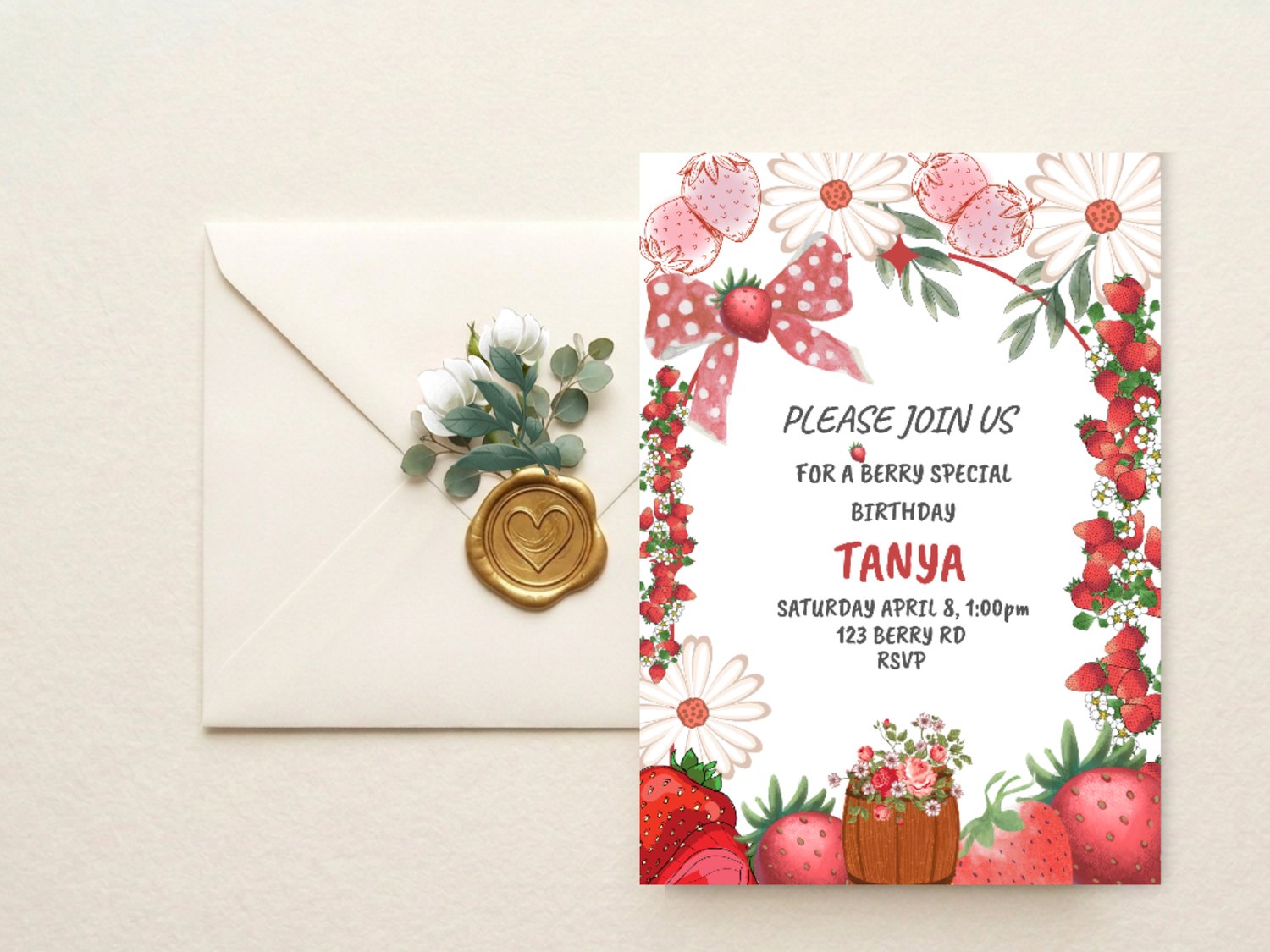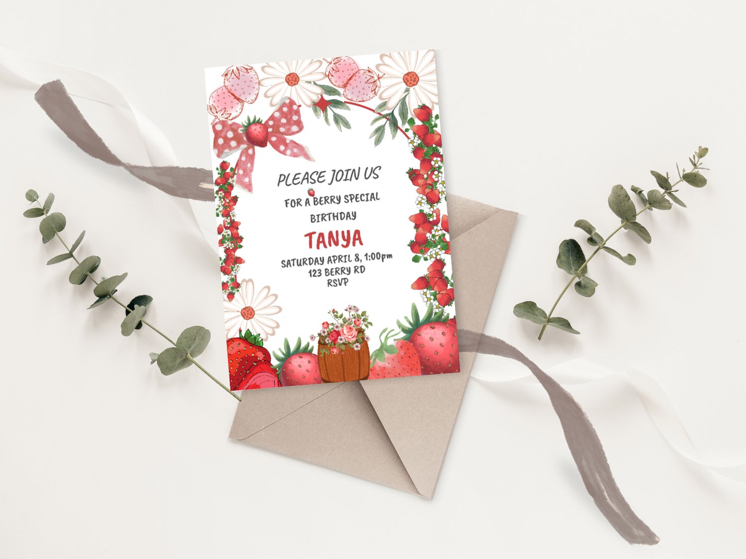 Strawberry Birthday Invitation – Editable Girl’s Party Invite