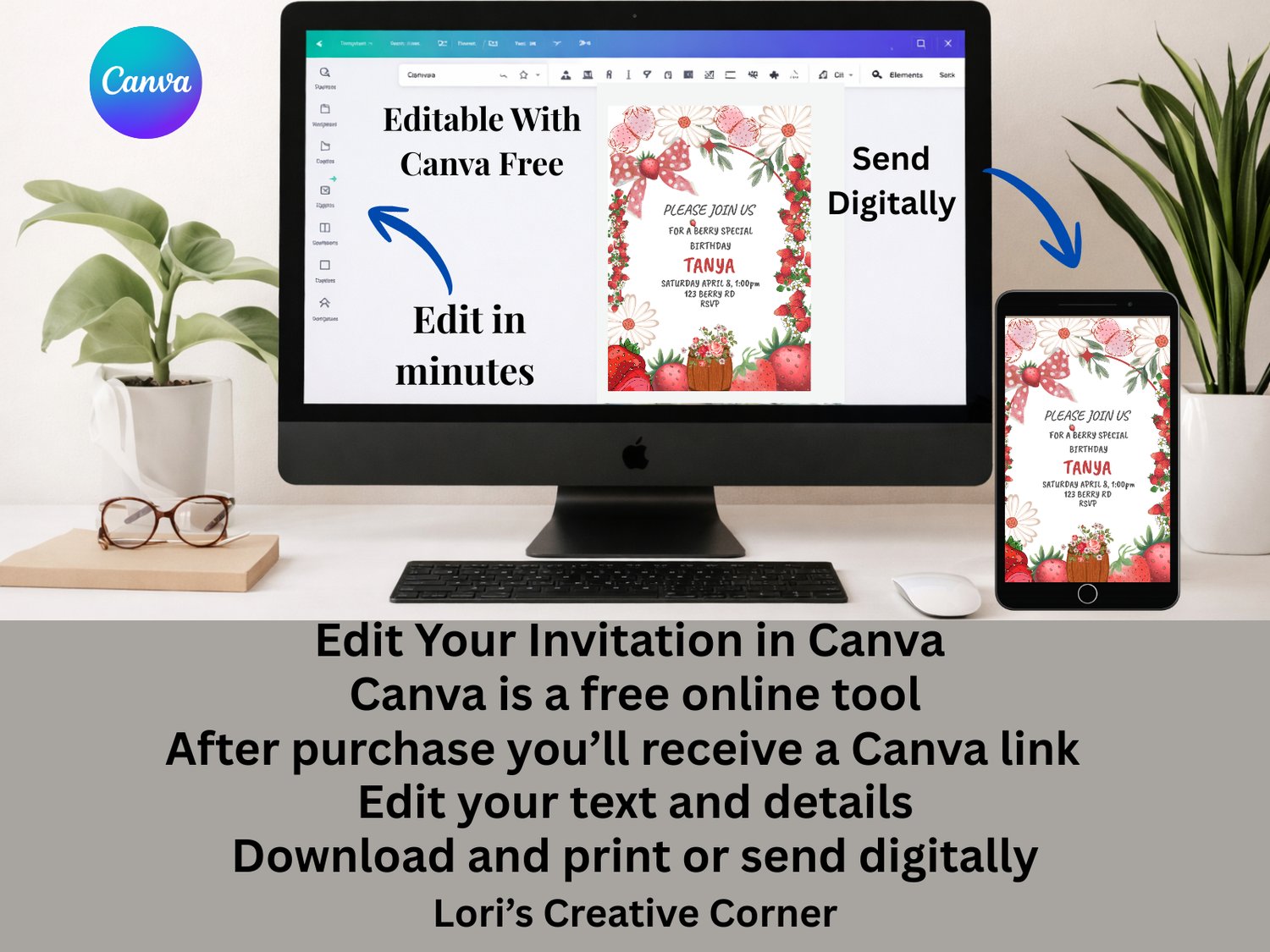 • 1 Editable 5x7" Birthday Invitation (via Canva link)