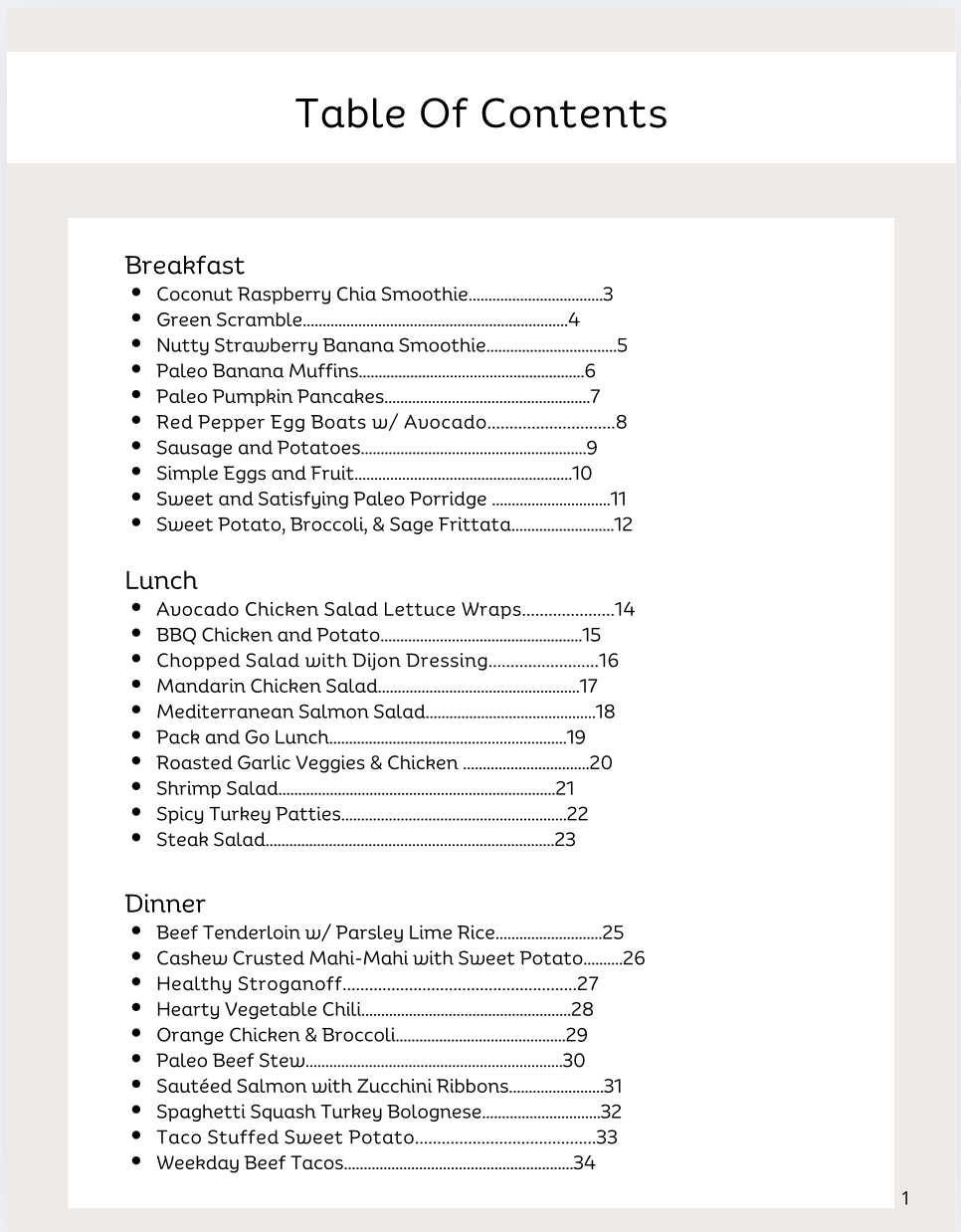 Paleo Recipe Bundle & Meal Plan 4 week - 46 pages