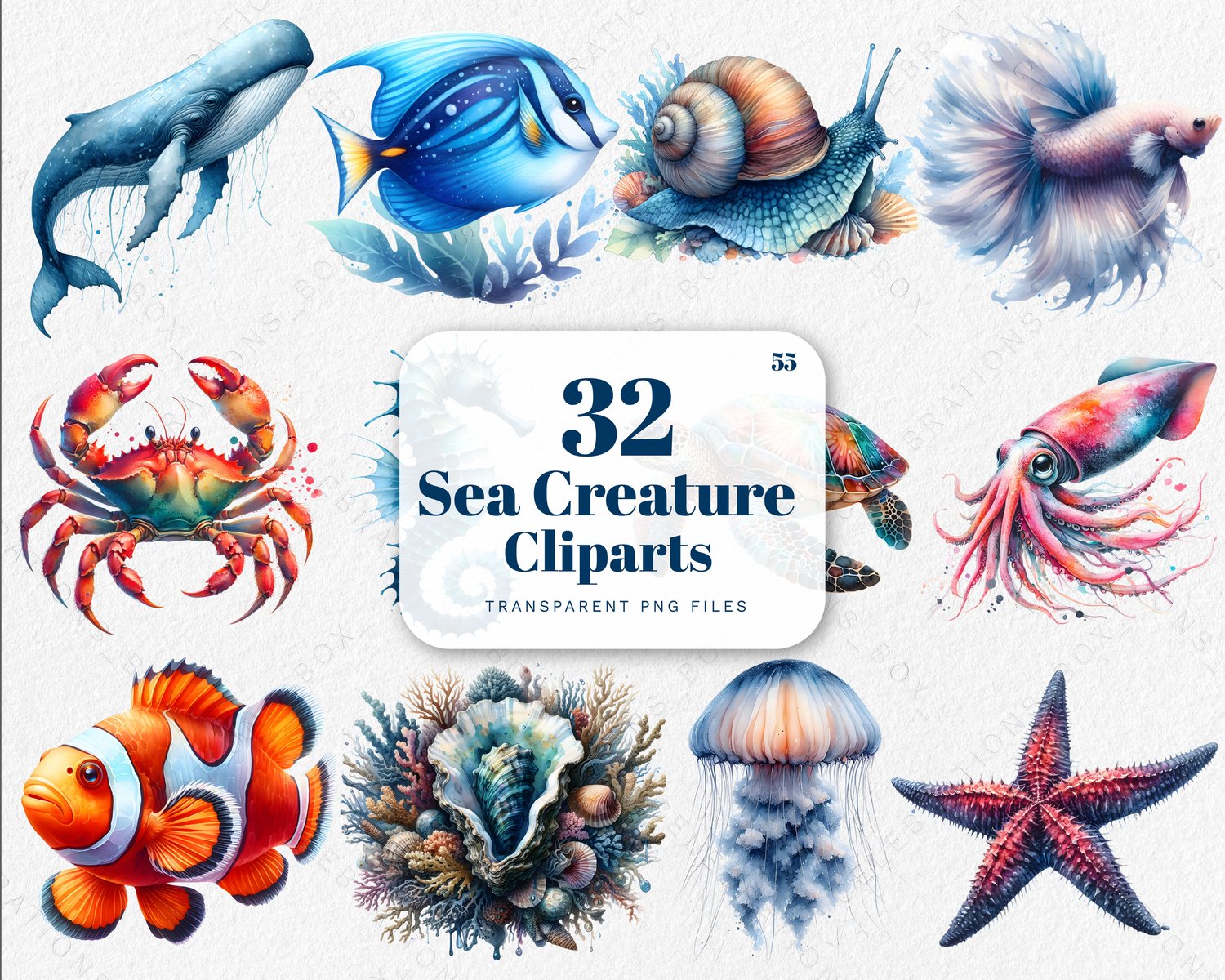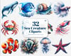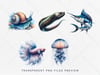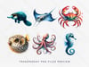 Watercolor Sea Creatures Clipart Bundle