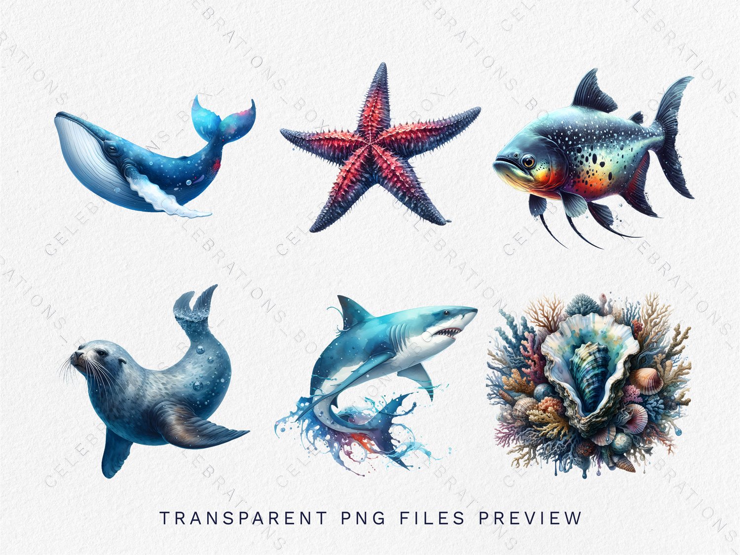 Welcome to our Aquatic Animals Watercolor Clipart Bundle! Set sail on a whimsical journey with this collection of 32 adorable sea and nautical animal illustrations. With their charming rounded features, soft watercolor hues, and endearing expressions, these delightful aquatic creatures are perfect for ocean-themed nurseries, nautical baby showers, first birthdays, and more.