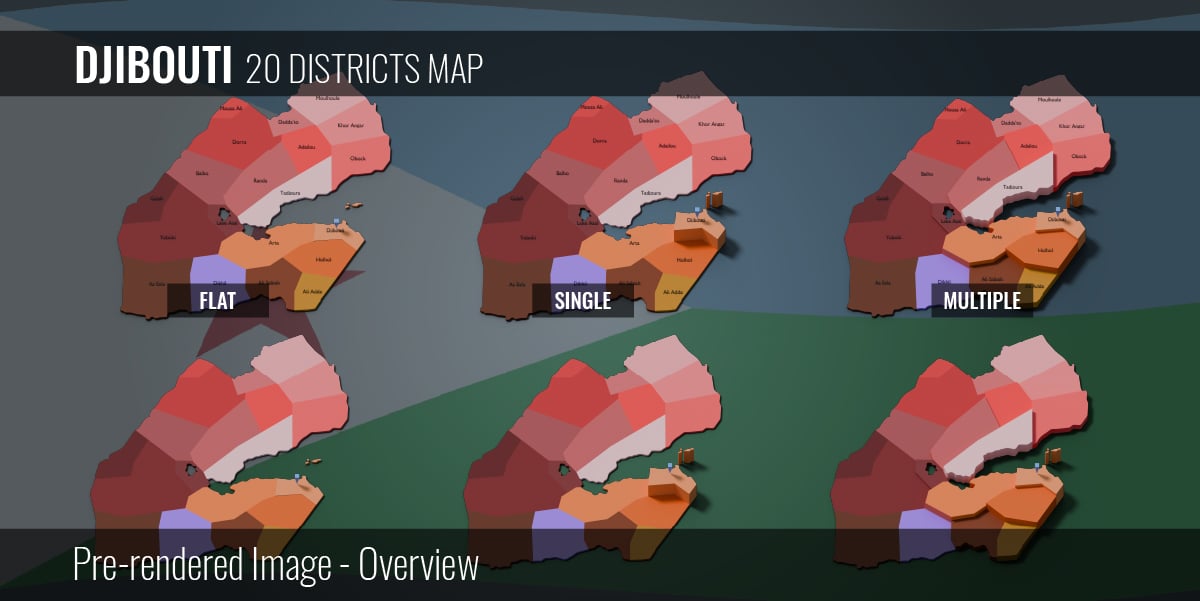 Djibouti - 20 Districts Map (3D + Pre-rendered Images)