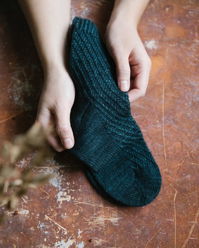 Originally the pattern was published in Laine’s 52 Weeks Of Socks book. The revised version of the pattern contains more sizes. The new size range allows to knit socks for kids and adults.