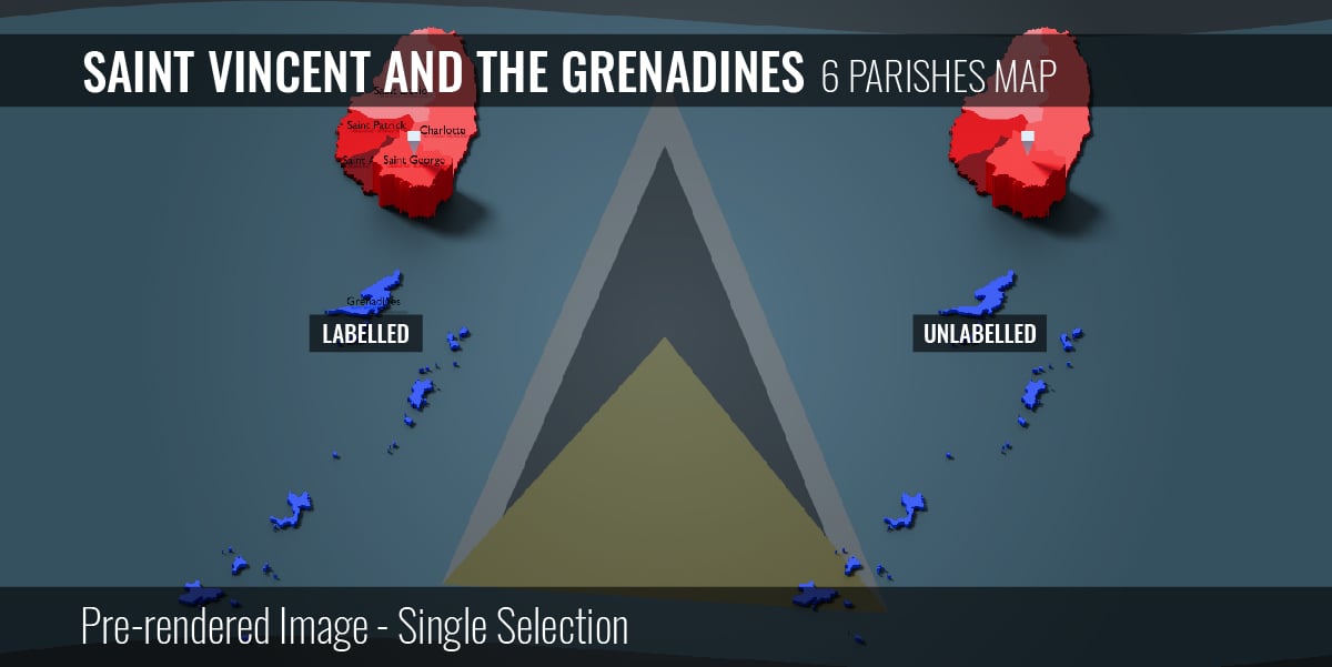 Saint Vincent and the Grenadines - 6 Parishes Map (3D + Pre-rendered Images)