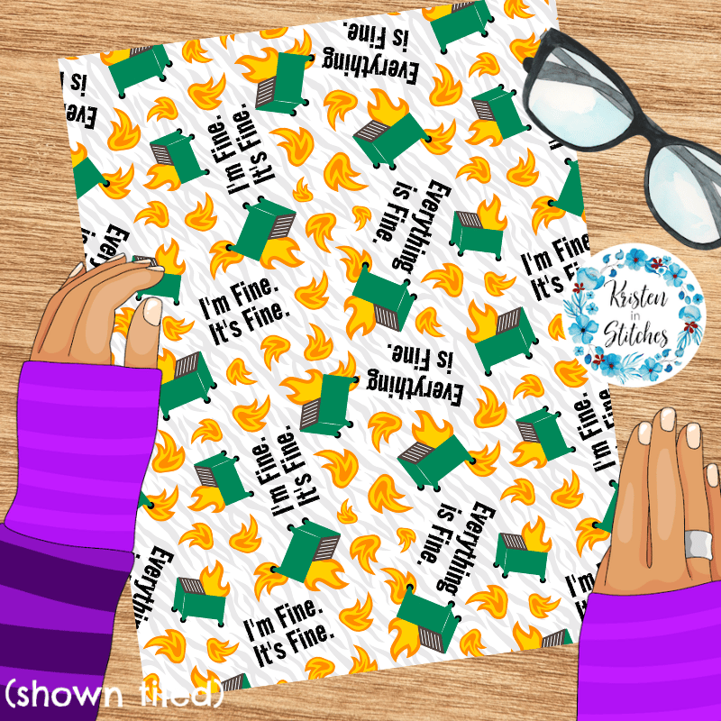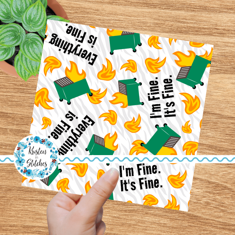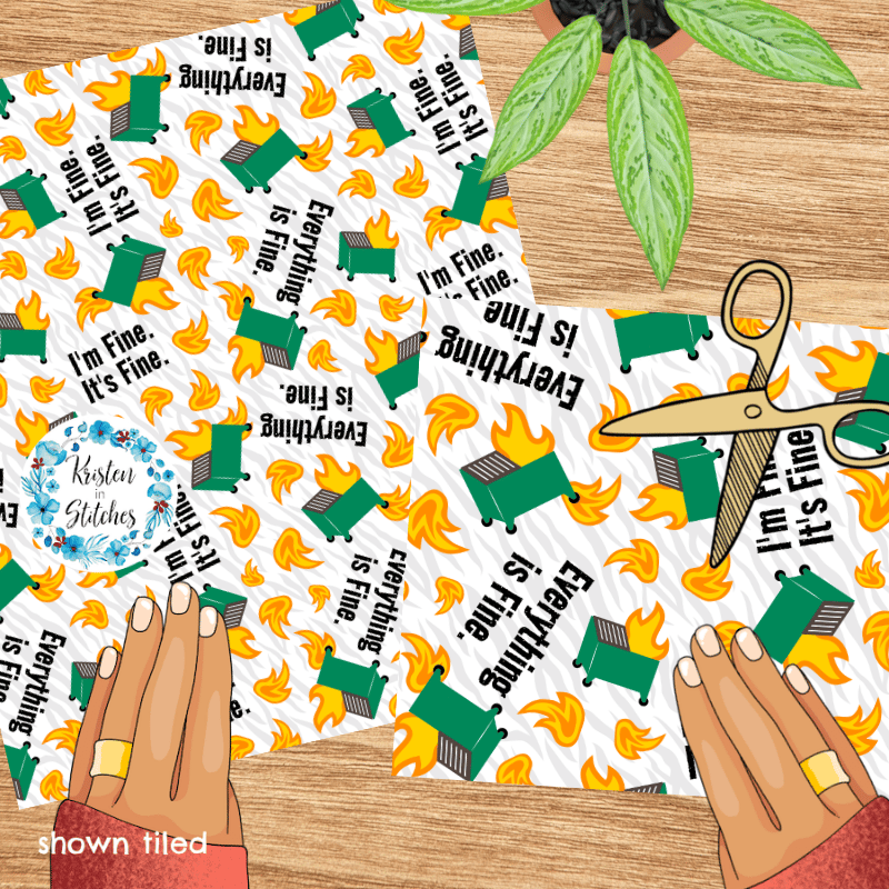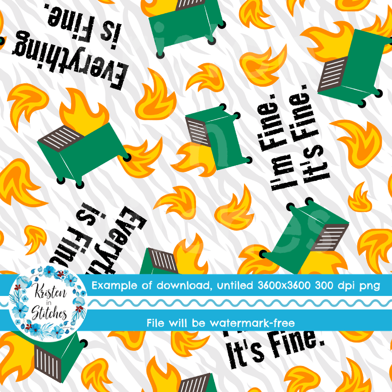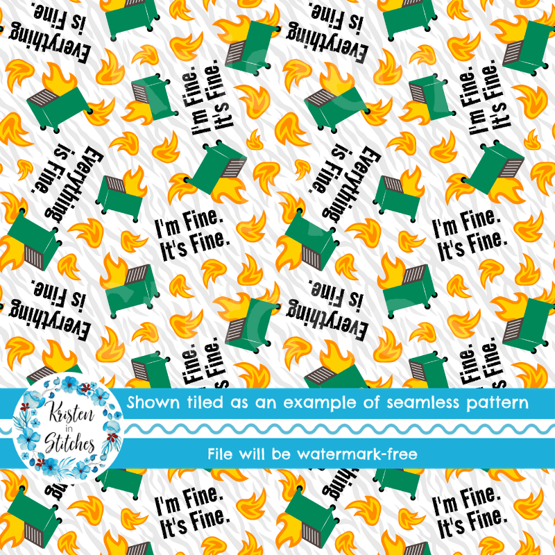 Dumpster Fire Seamless Pattern, Sarcastic Moody Humor, I'm Fine