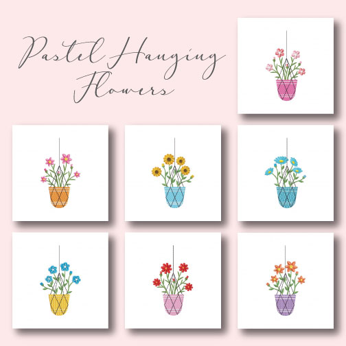 Machine embroidery design bundle, pastel hanging flowers, INSTANT DOWNLOAD