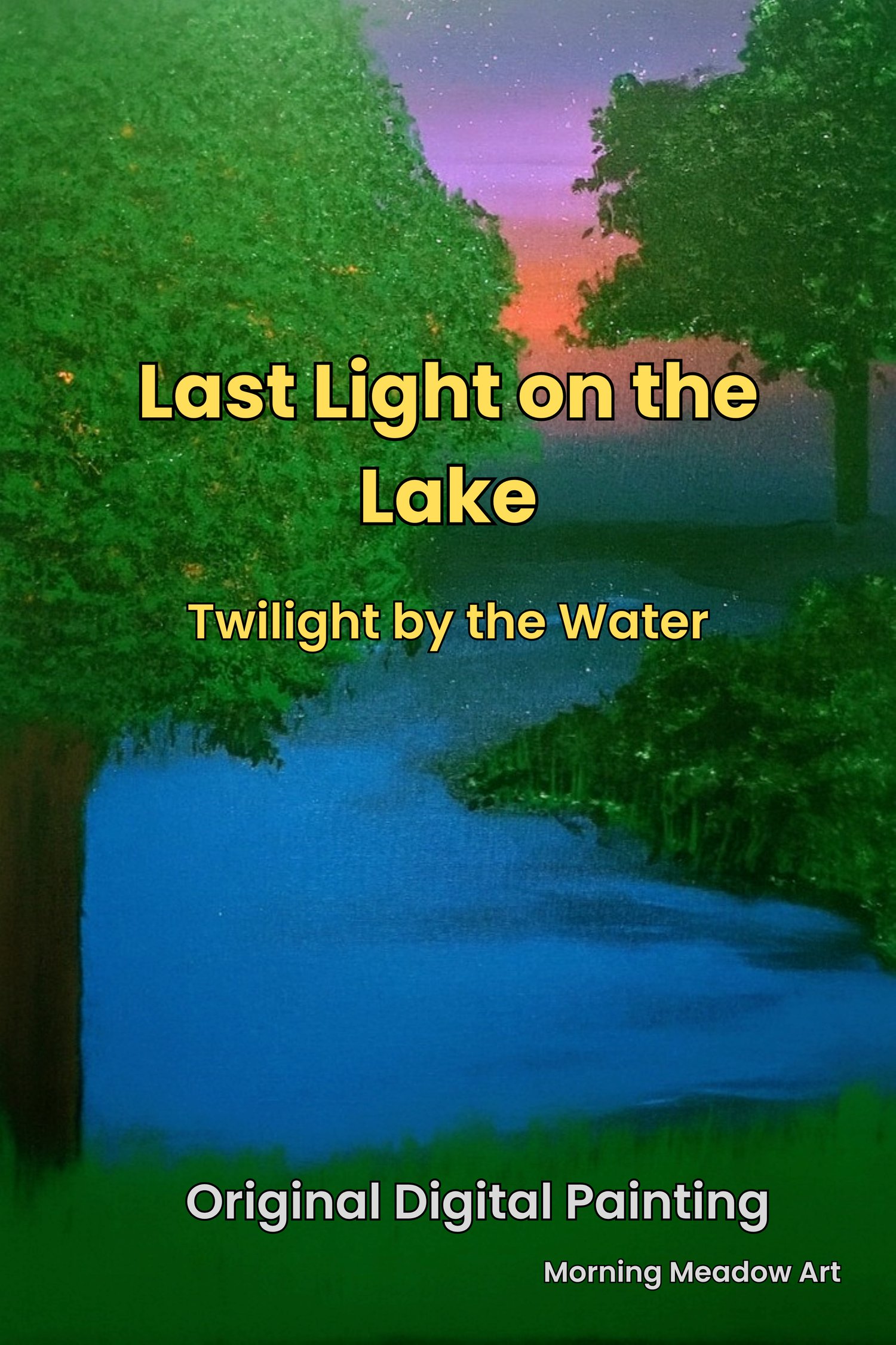 Step into the quiet magic of dusk with Last Light on the Lake. This digital art print captures the soft glow of twilight reflecting over still waters, where the sky melts into gentle shades of pink, gold, and deepening blue. Every glance invites a pause—a breath of serenity in a busy day—and transforms any space into a peaceful retreat. 🌅