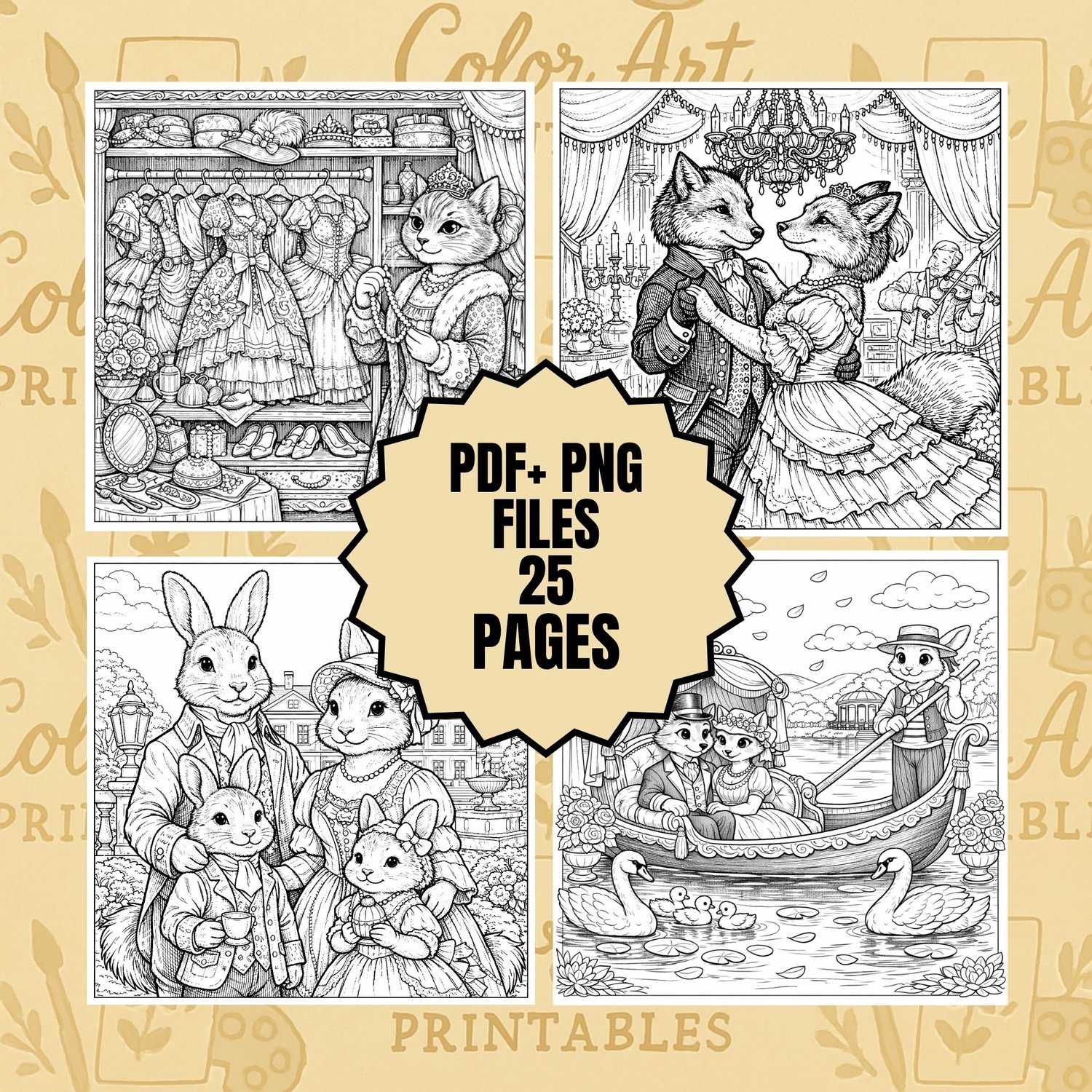- 25 ilustraciones originales Bold & Easy de animales románticos en escenarios de época