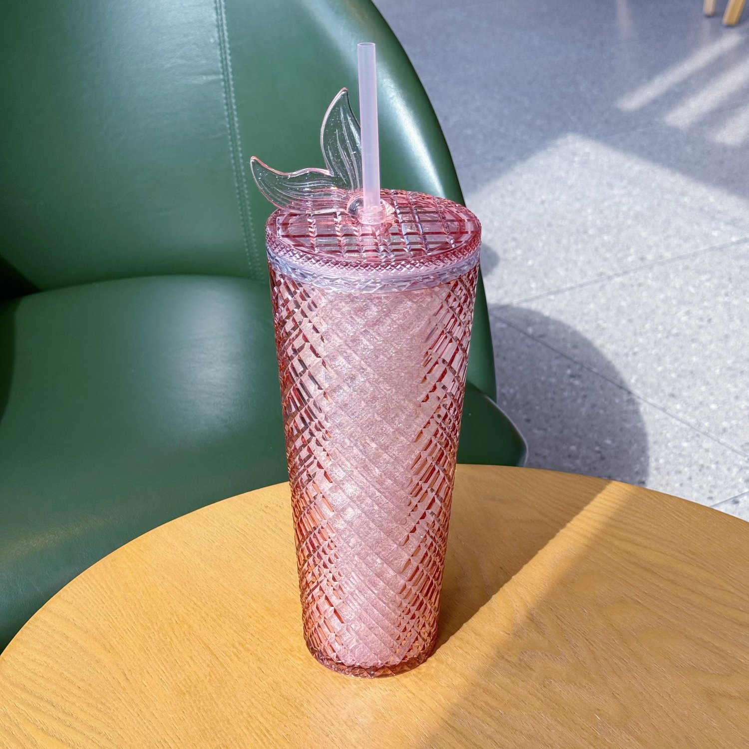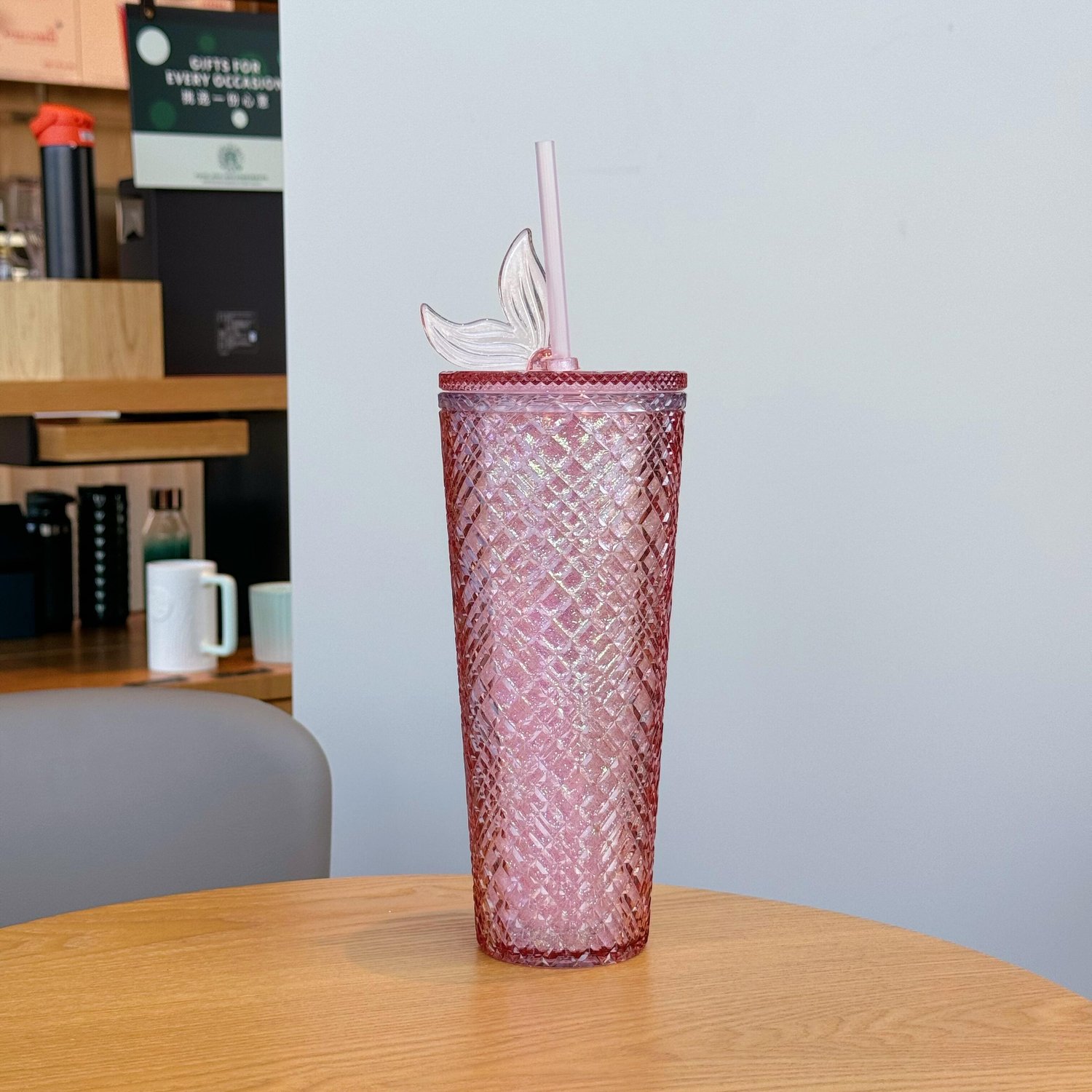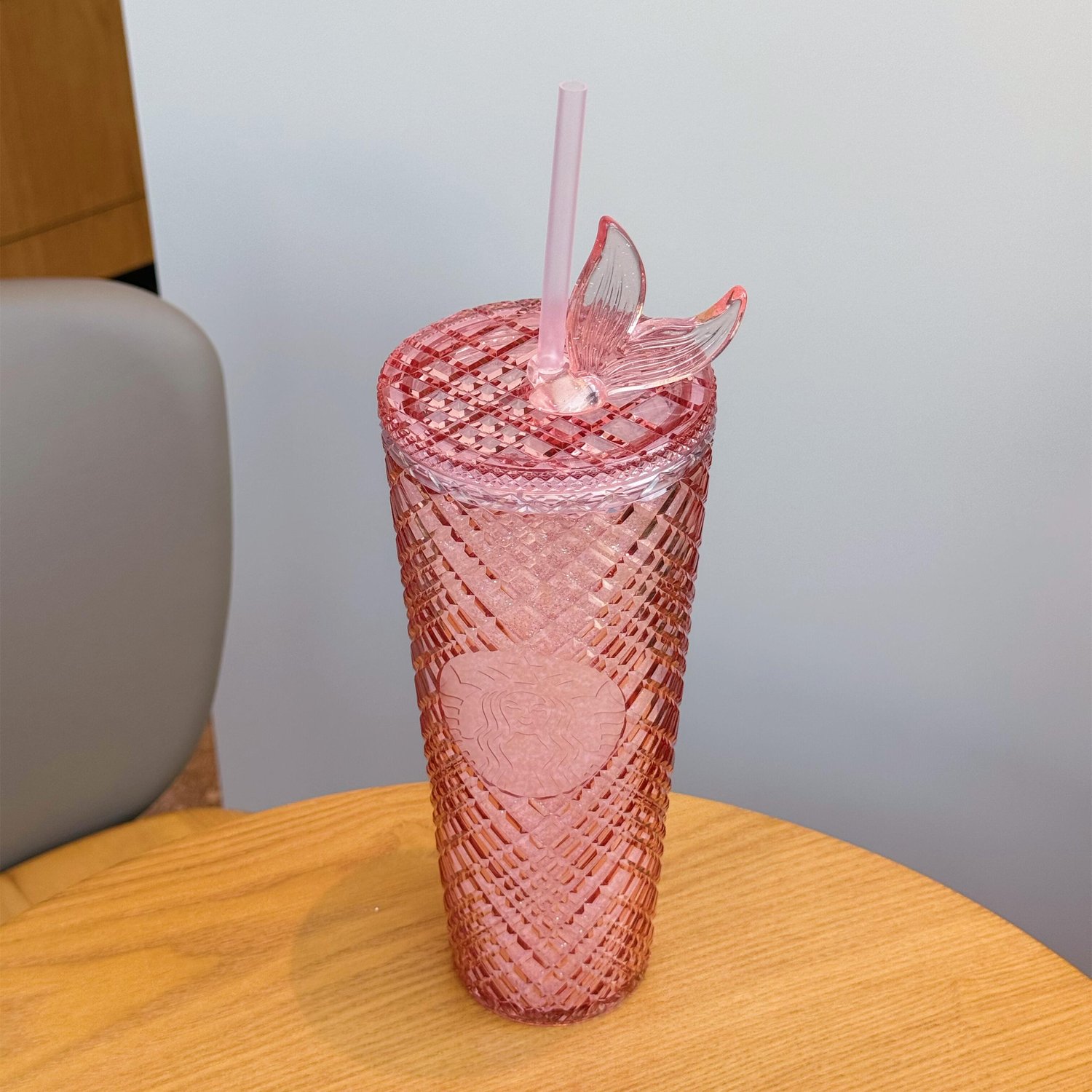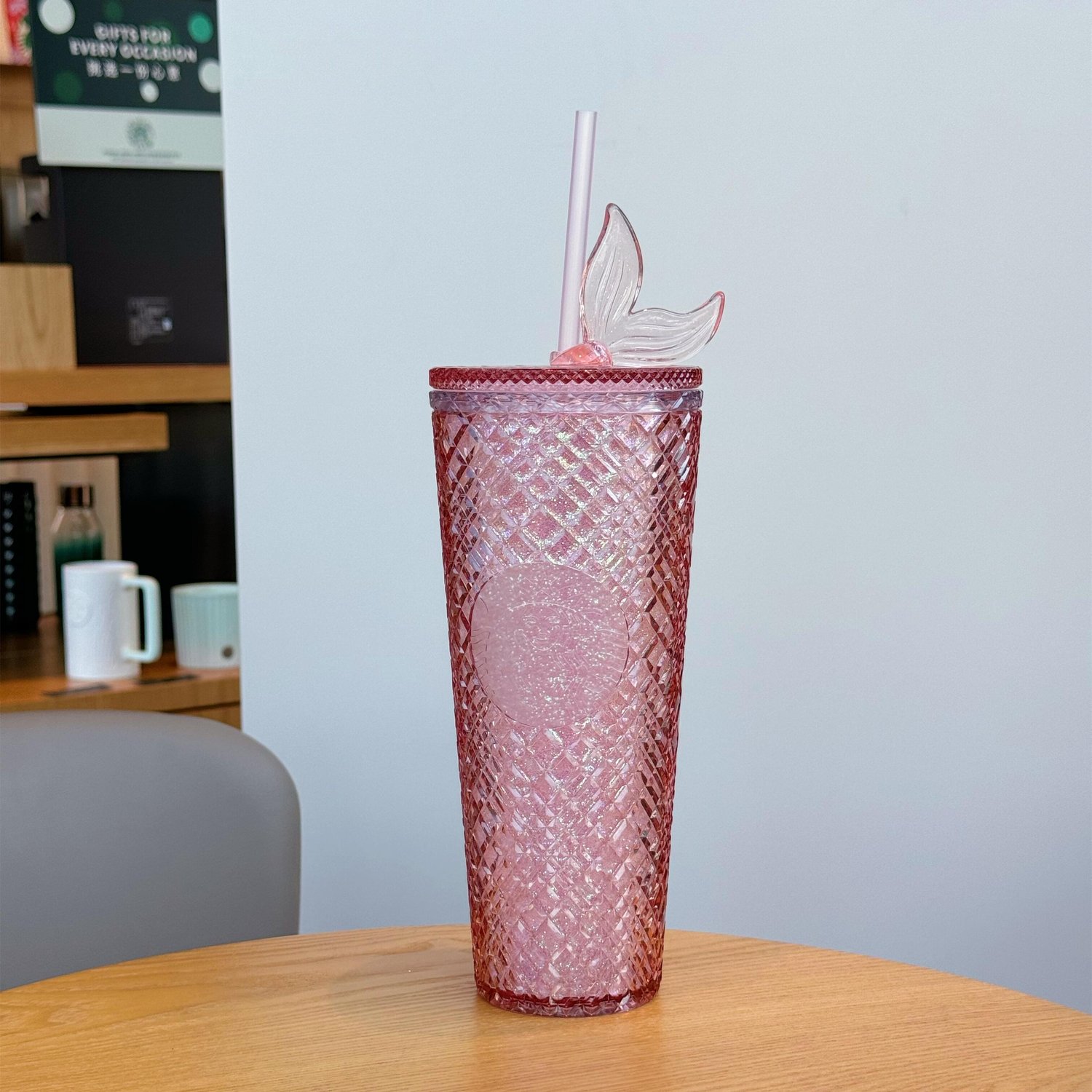 2023 Starbucks China 24oz Holiday Pink Jewel-studded Tumbler with Siren Tail Topper and Straw