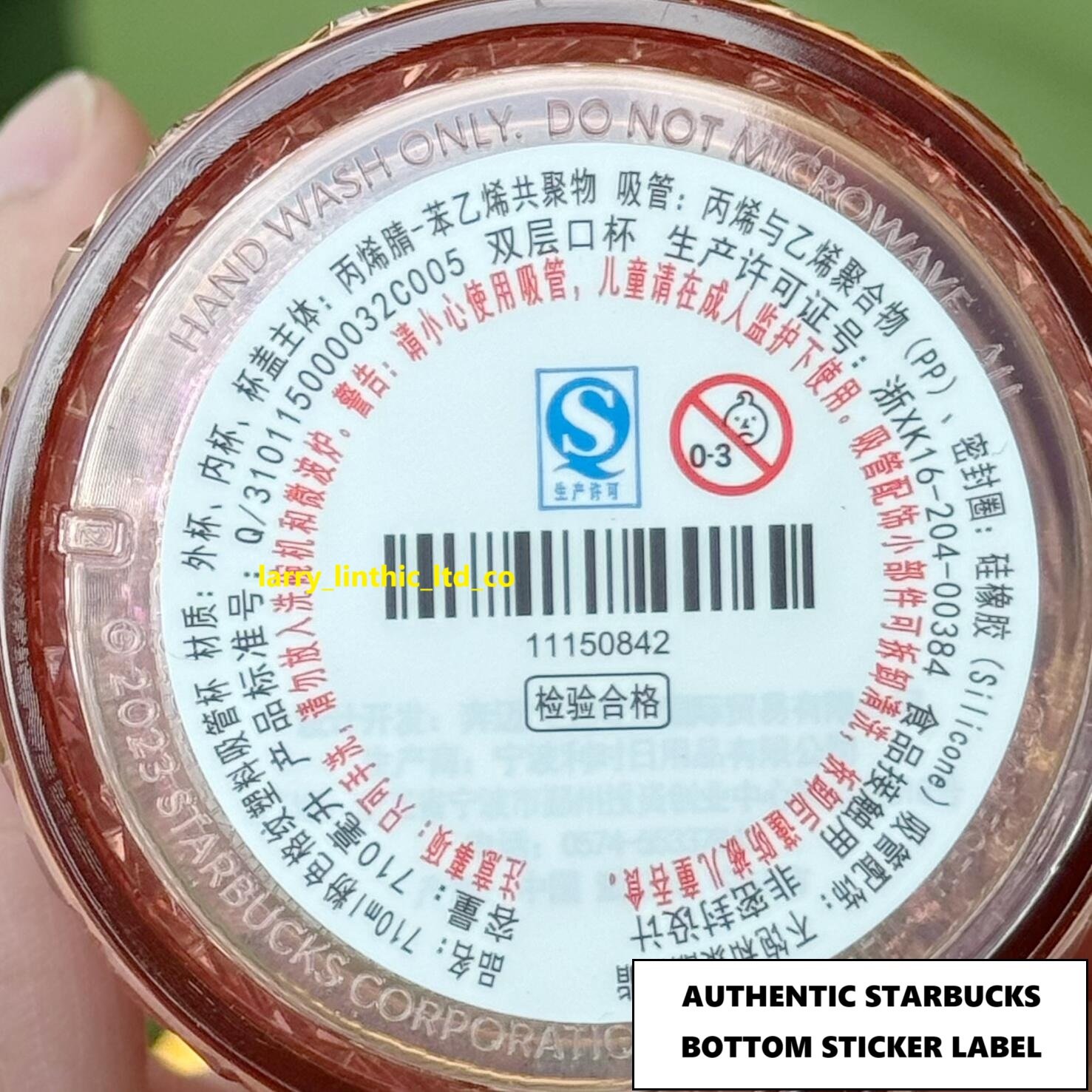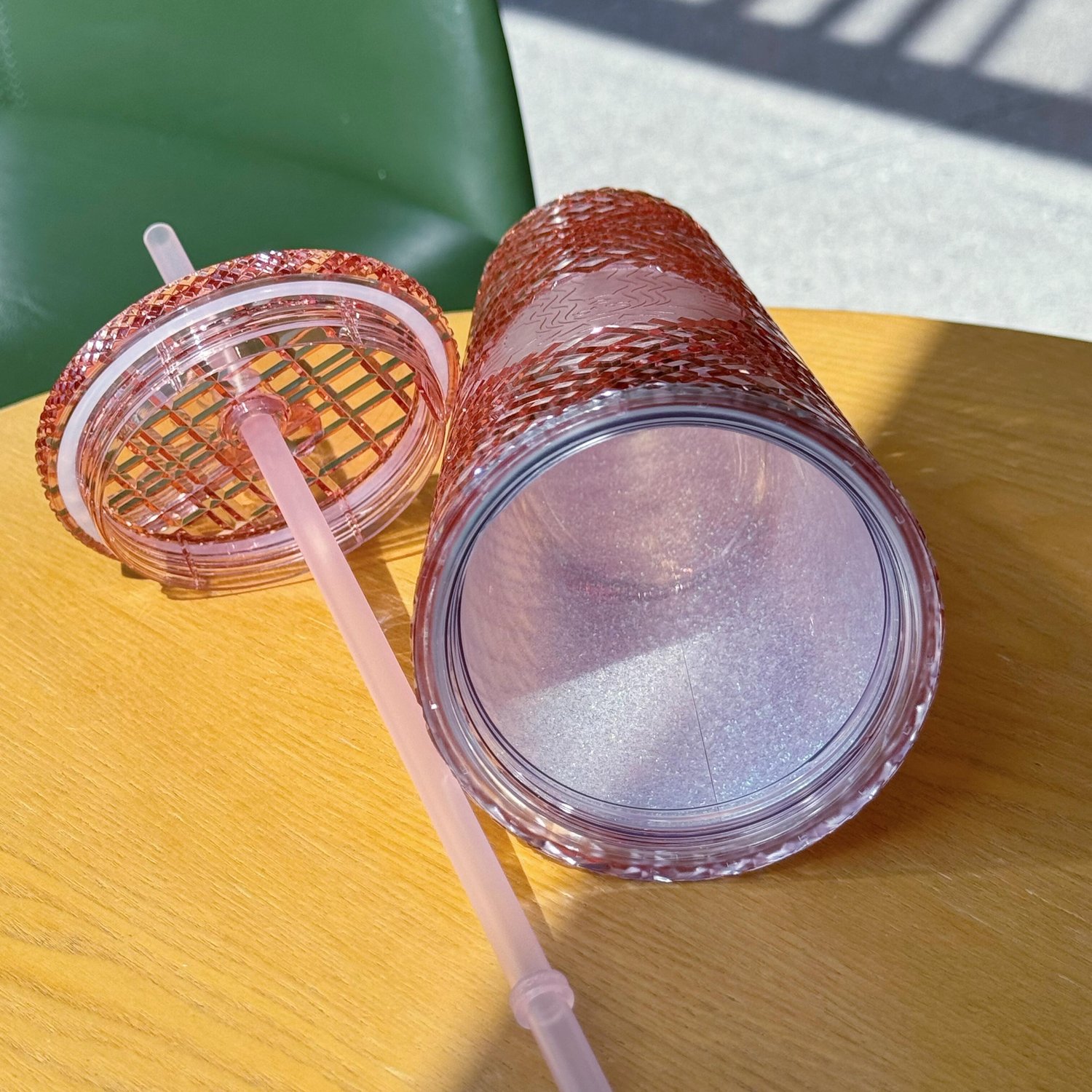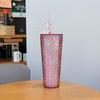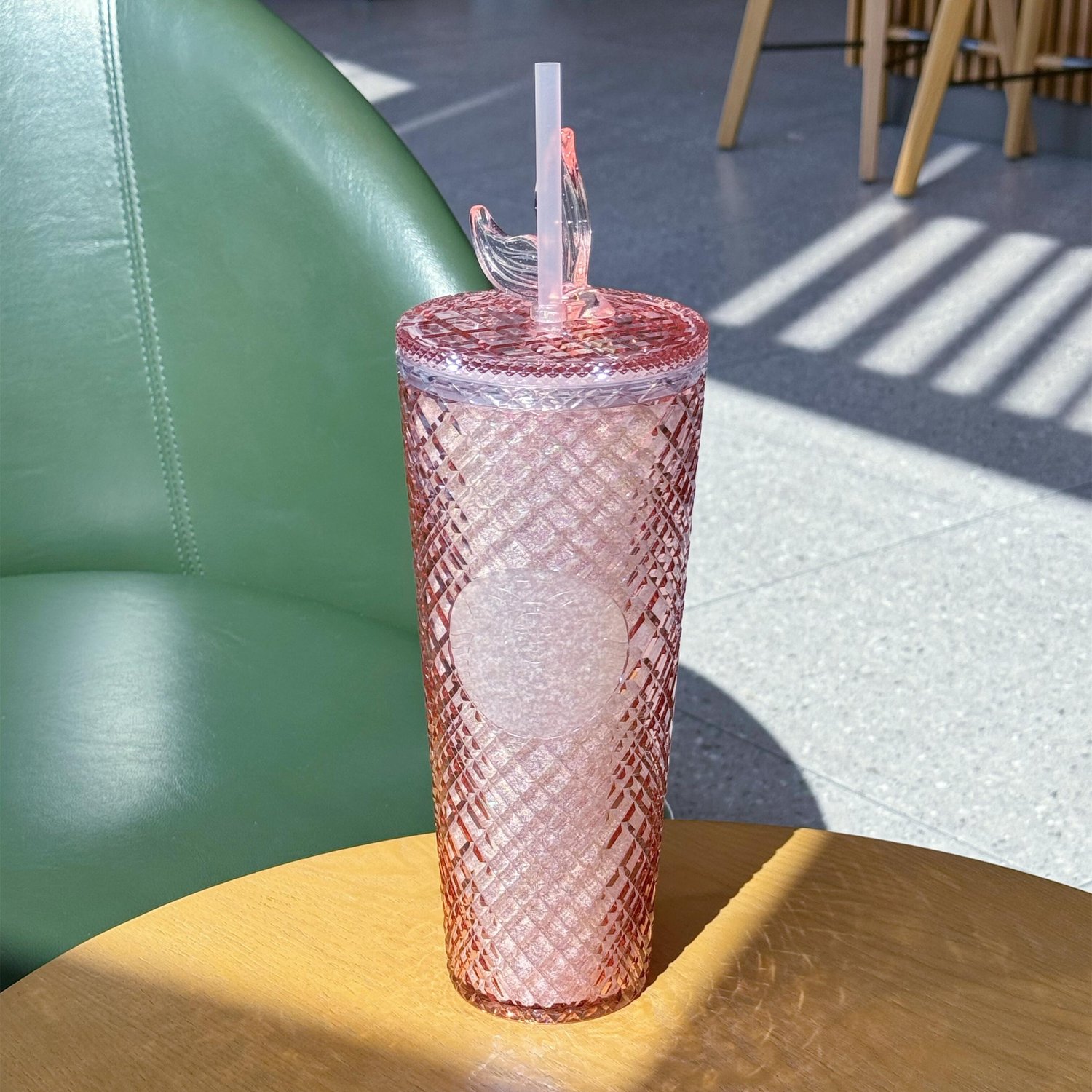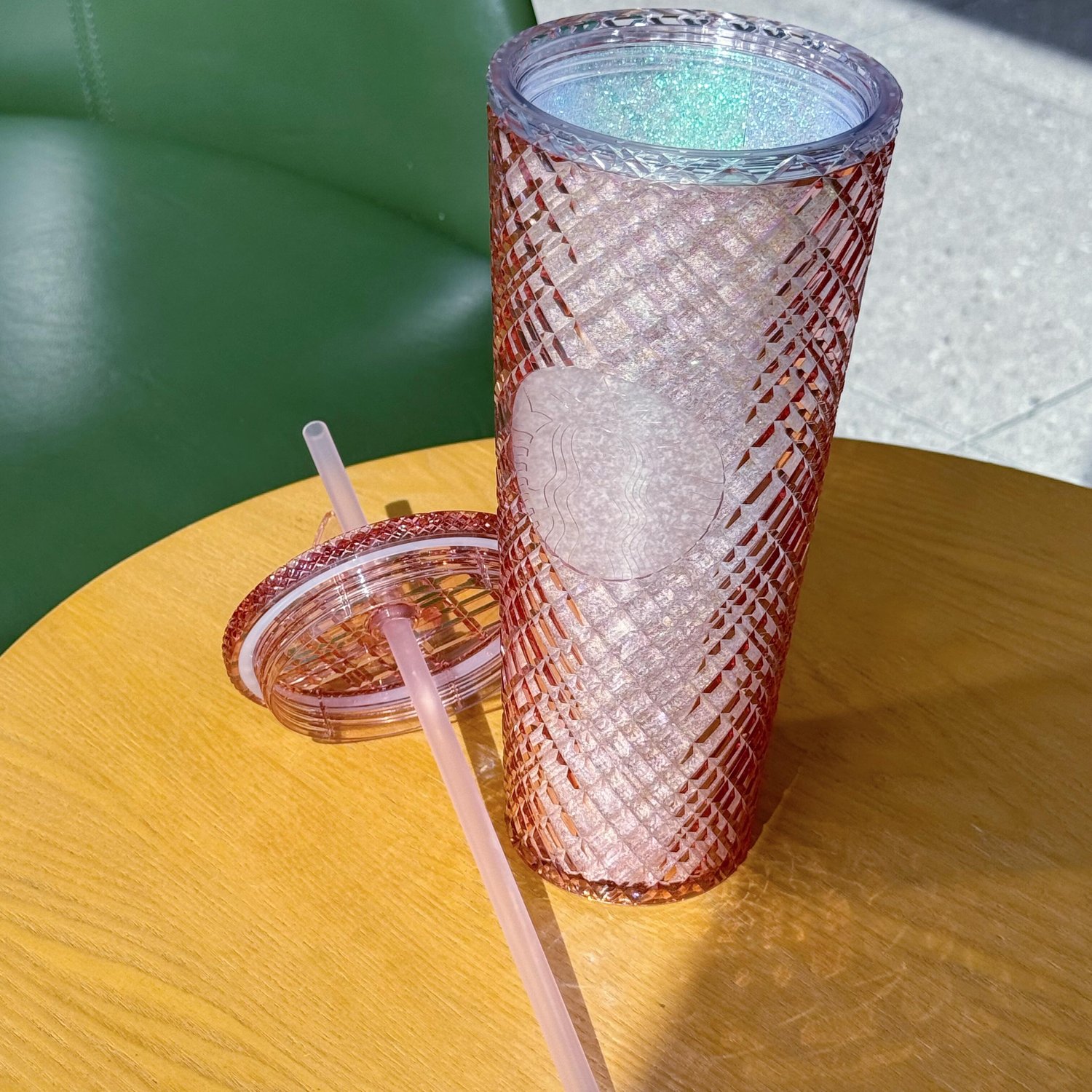 2023 Starbucks China 24oz Holiday Pink Jewel-studded Tumbler with Siren Tail Topper and Straw