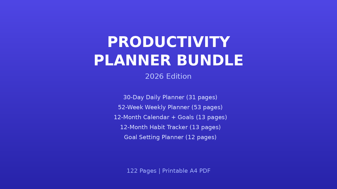 Productivity Planner Bundle 2026 - Daily Weekly Monthly + Habit Tracker (122 Pages PDF)