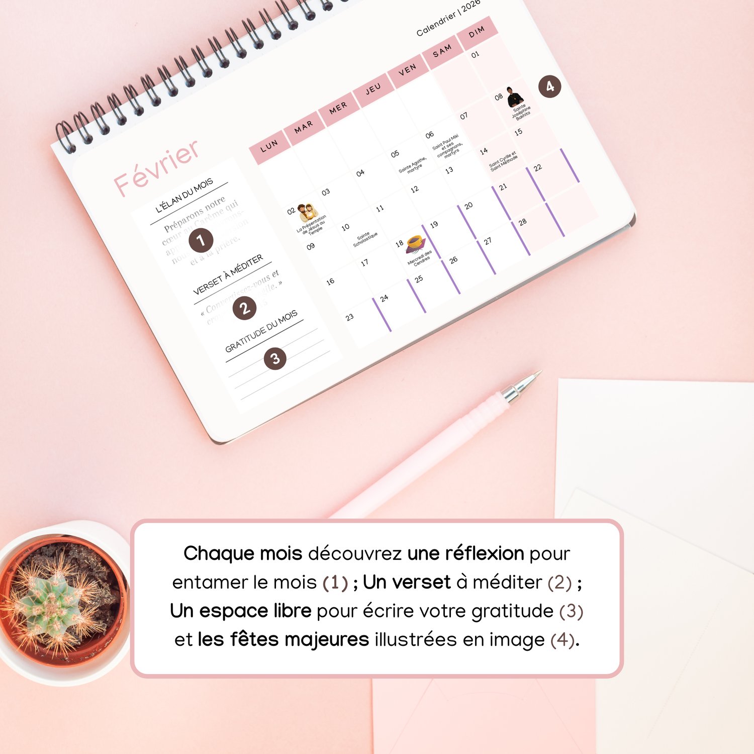Ce calendrier catholique et méditatif a été conçu pour vous aider à unifier votre vie quotidienne et votre vie spirituelle, jour après jour.