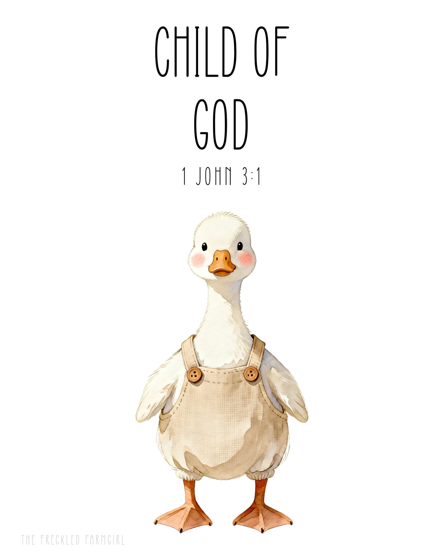 Neutral Christian Nursery Wall Art Set – Bible Verse Baby Prints – Child of God Scripture Decor – Whimsical Duck Nursery Prints – Set of 3 (16x20 Download)