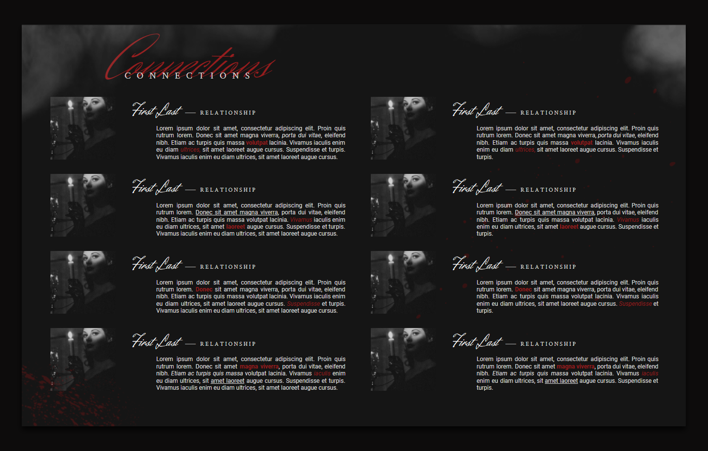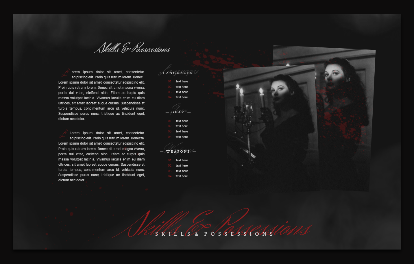 - Doesn't have to be bloody! Feel free to click those bad boys and hit delete and then you just have a nice dark fancy template.