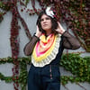 The iconic striped shirt Pugsley wore throughout the movie was the primary inspiration, but then I found myself drawn to include the border that reminds me of Morticia’s sleeves, and the split in the back creates a collar (if worn backwards) reminiscent of Wednesday’s dress collar.