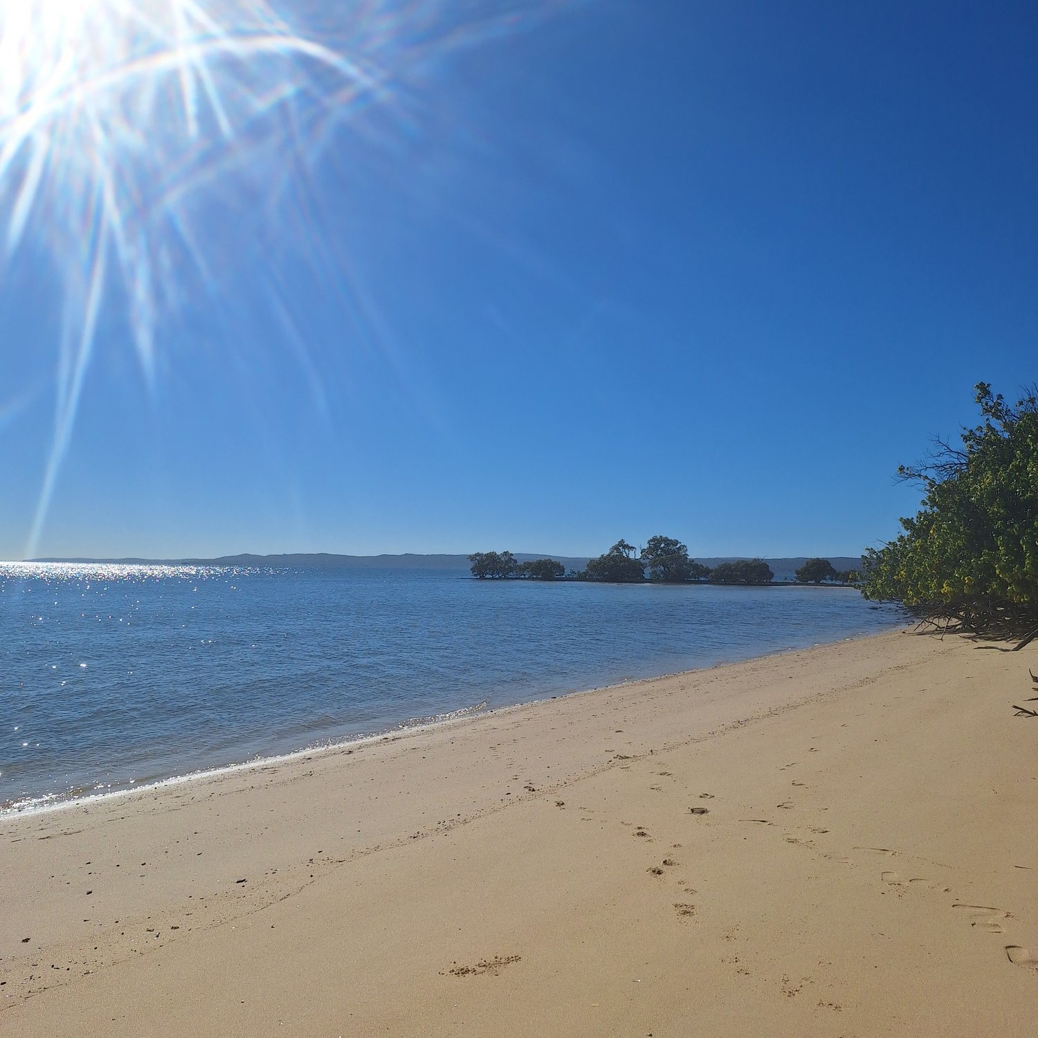 Imagine the sun bathing you, the soft warm sand under your feet. Grounding you.