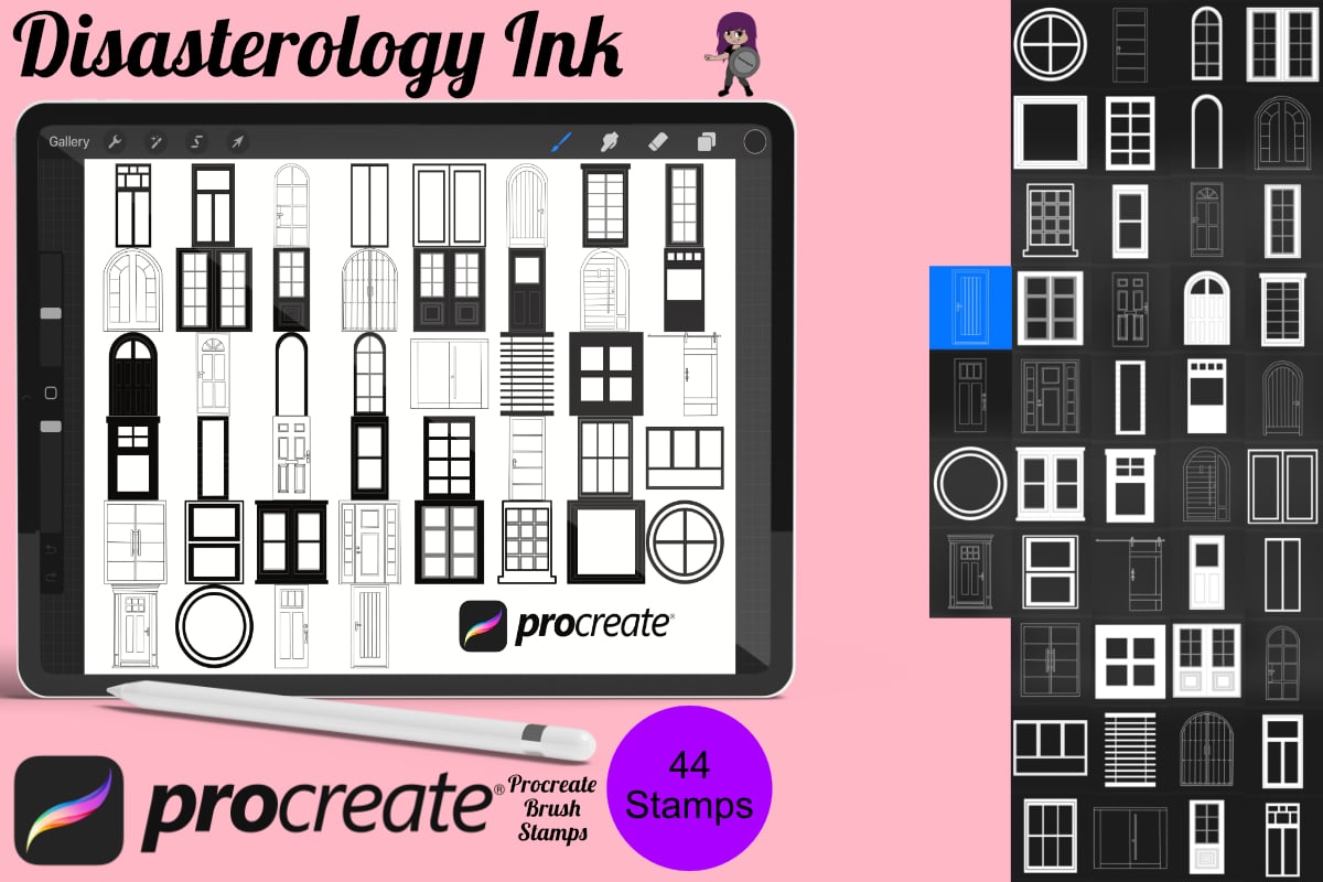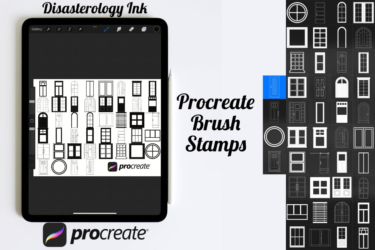 Procreate stamps save time when drawing, saving the effort of having to recreate the same thing for multiple designs and projects, save time on your design by purchasing these doors & windows furniture brush stamps so you can utilise that time on creating more beautiful art.