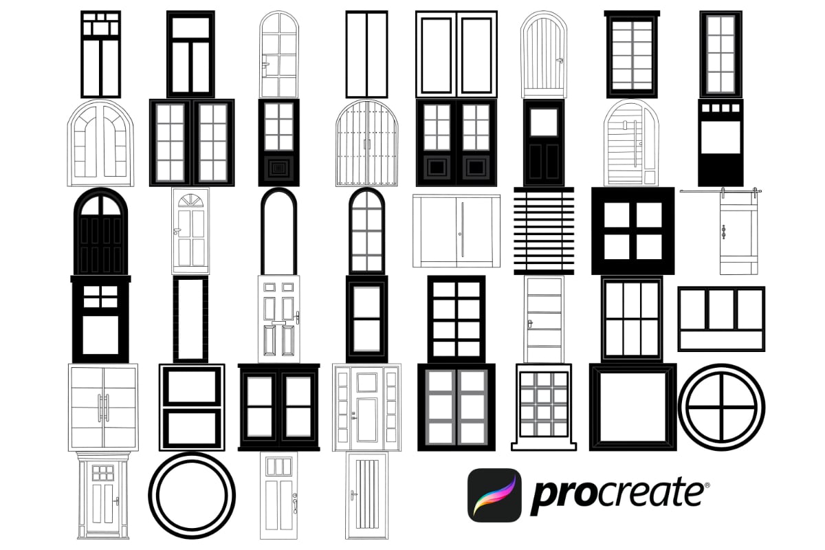 Doors and Windows Furniture Set 1 Procreate Brush Stamps, 44 Doors & Windows