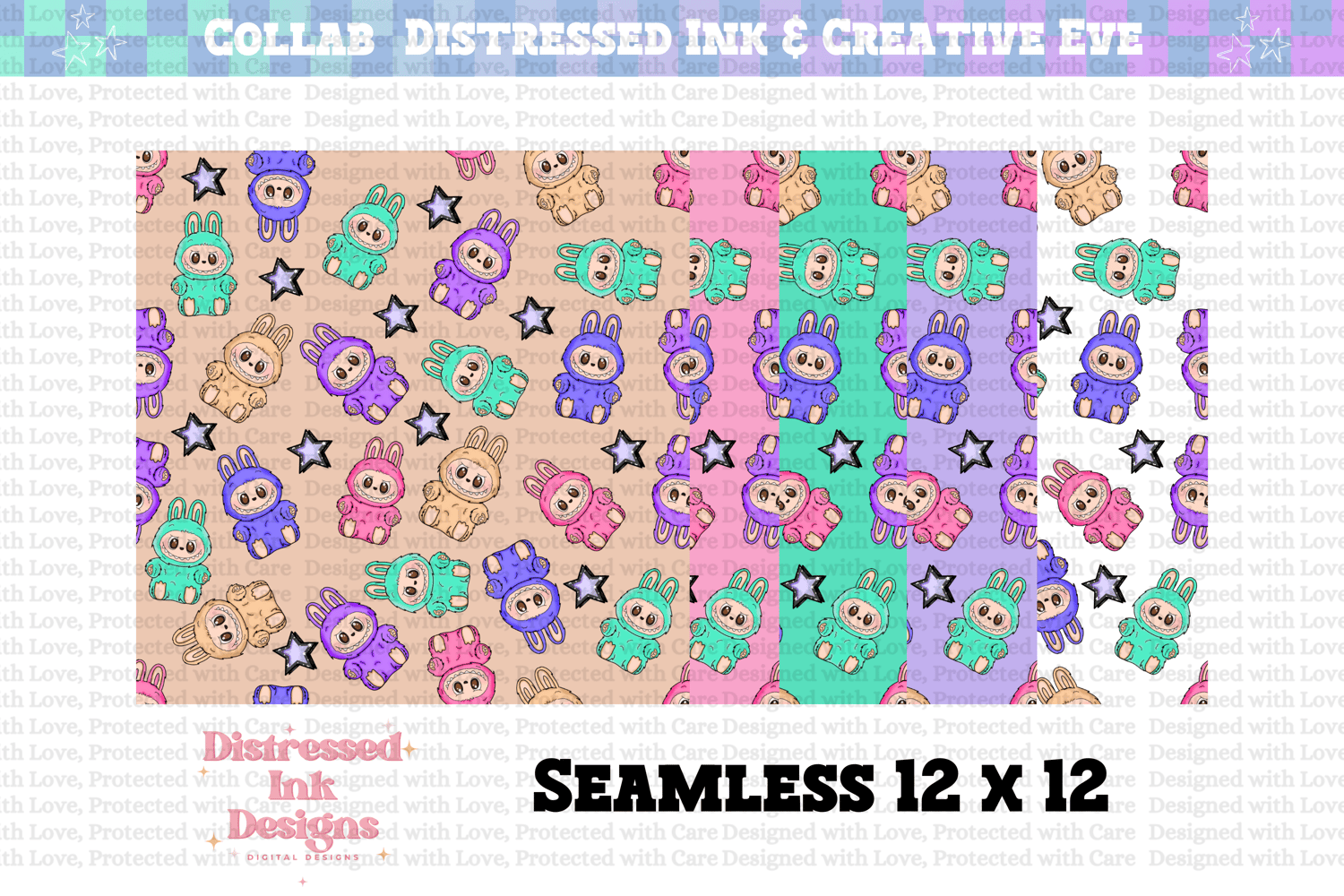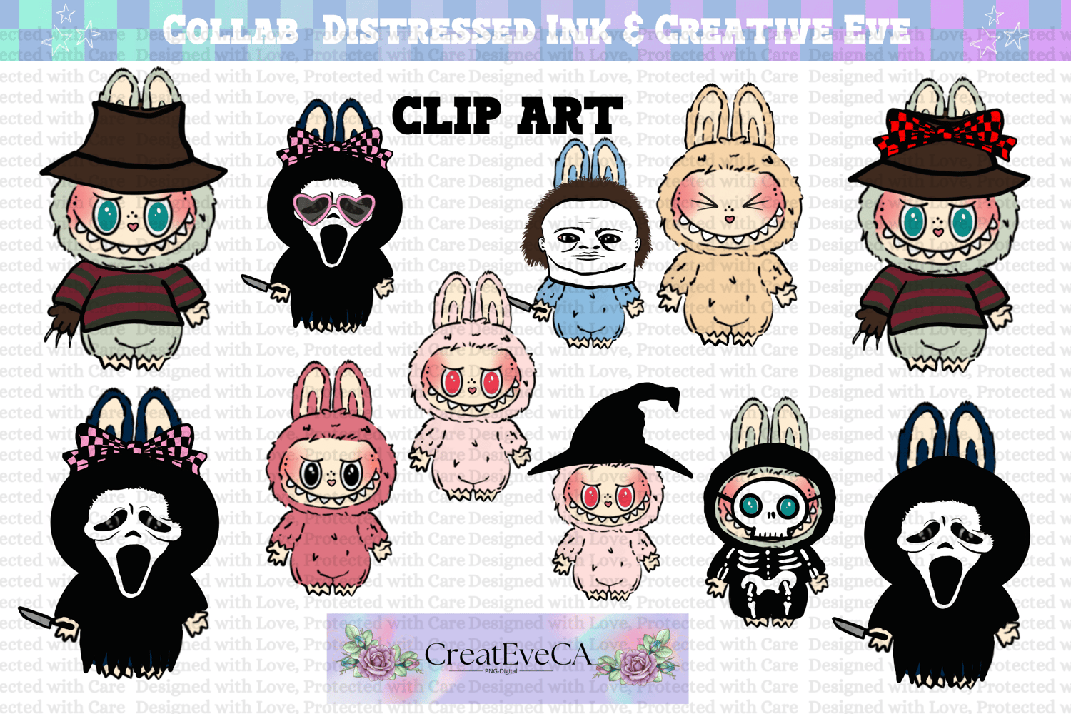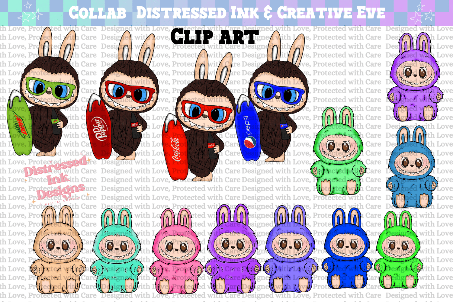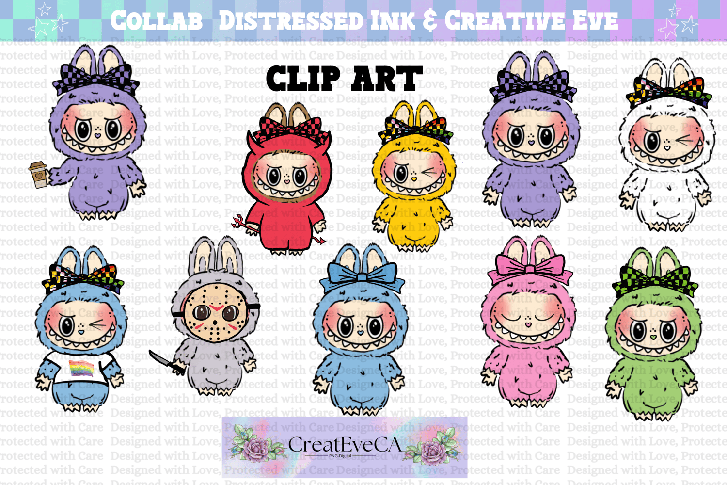 Hand Drawn Labubu Huge Collab Clipart , Seamless and Wraps Collection