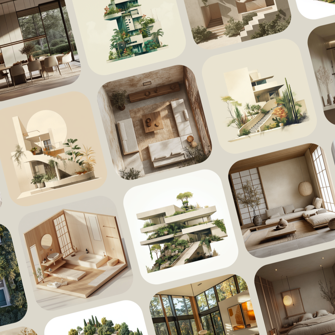 · eBook 3: 50 Prompts for Architects — Access more than 50 prompts on interior / exterior design, architectural illustration, and furniture, organized by different types of architectural views.