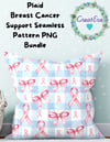 Pink Ribbon Cancer Awareness & Preppy Bows Seamless Pattern Commercial Use 3 Color PNG Bundle
