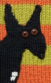 My friends Sarah and Robb are dog lovers like me. So when I found out they were going to have a baby, I thought a dog sweater would be the perfect gift. The dog on the sweater is Ella, their sweet but skittish girl who is black with a white spot on her chest. When Forrest was born, Ella sent out the birth announcements! Ella is knit separately and sewn on, to make it easy for you to personalize it without having to rework the sweater. Use a different color or texture yarn, and tweak the chart if you'd like to match your own dog (just be sure to match the dog gauge).