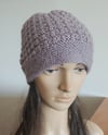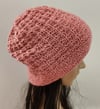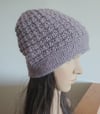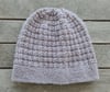 This 8ply/DK family Beanie, which covers sizes from 2 years to mens, has a garter stitch brim then is worked in an easy textured pattern.