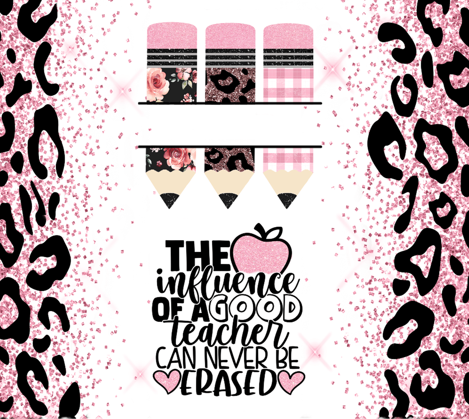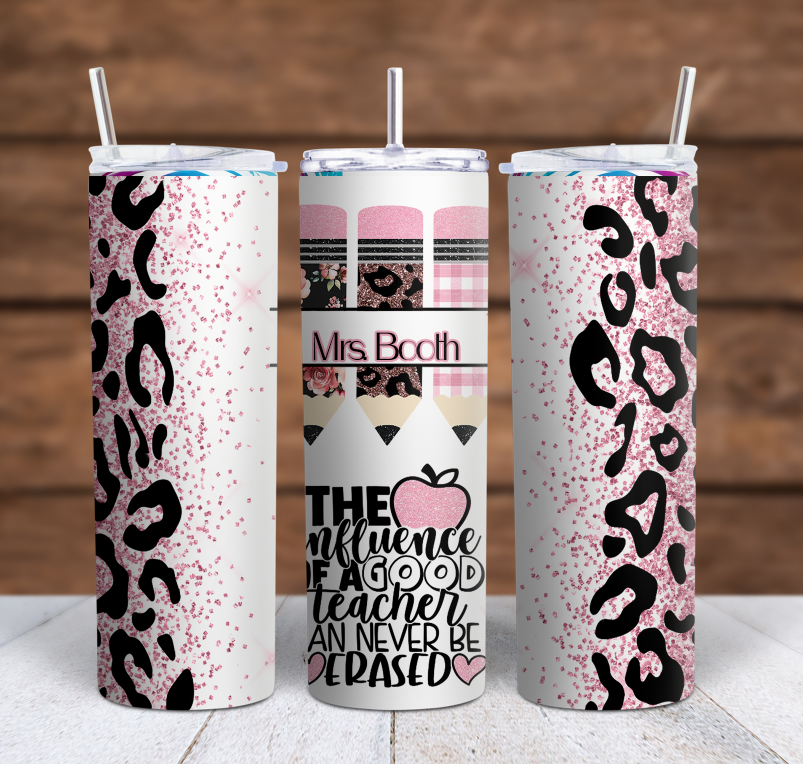 The Influence of a good Teacher can Never be Erased! Pink leopard 20oz Tumbler - Can be personalized at no extra charge