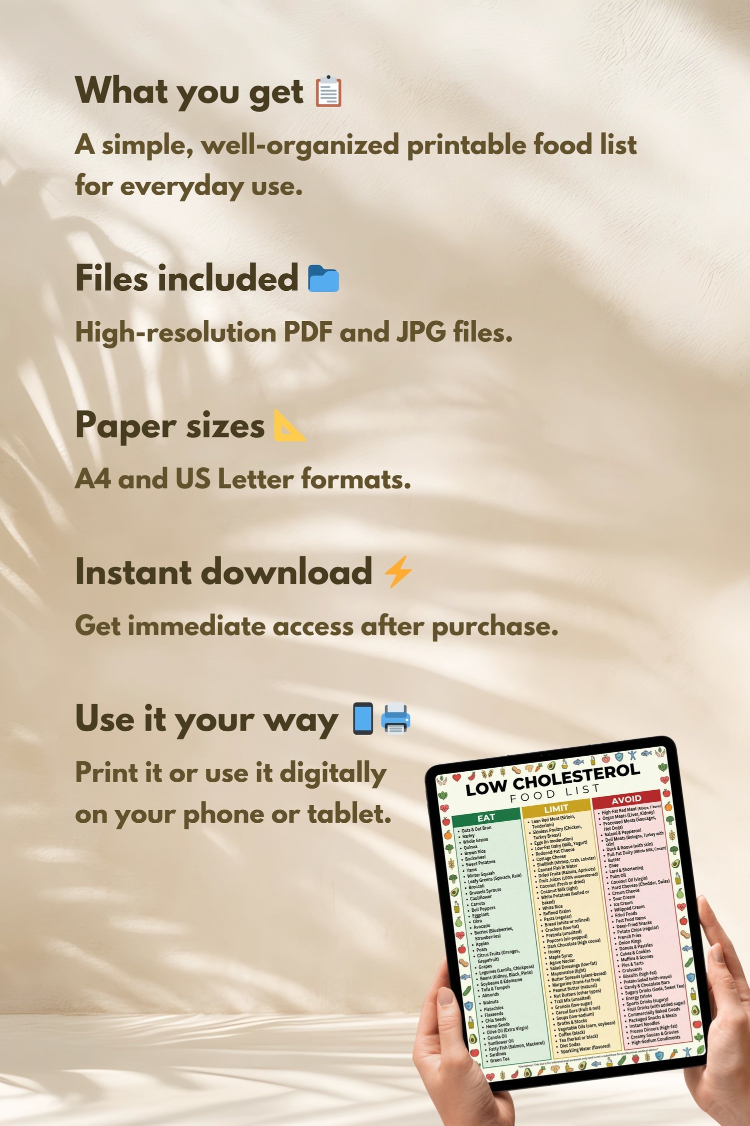 Take control of your heart health with this professionally designed, comprehensive food guide. Perfect for anyone looking to manage cholesterol levels with clarity and ease. Designed to help you make better everyday food choices.