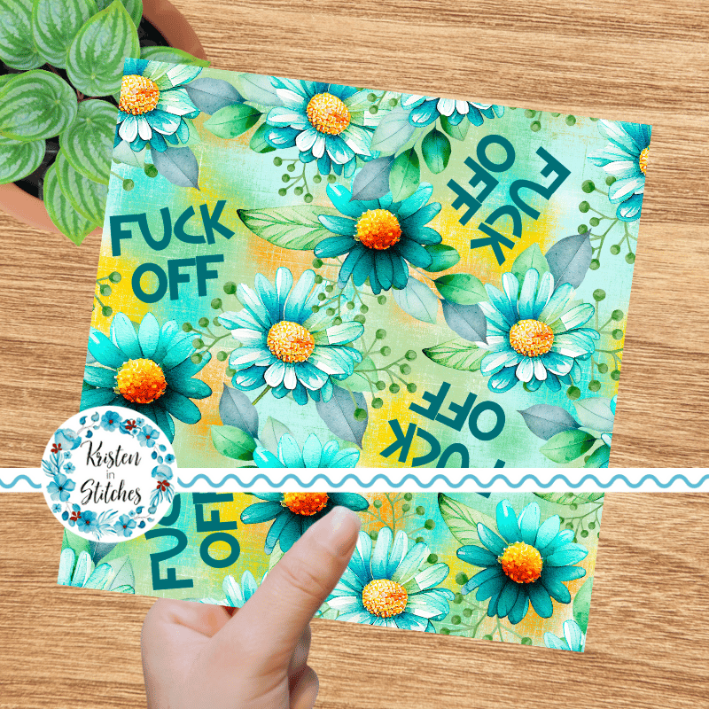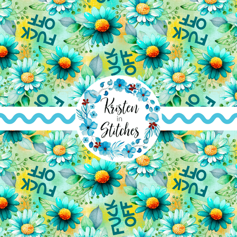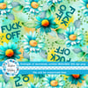 Fuck Off floral pattern with daisy flowers in turquoise.
