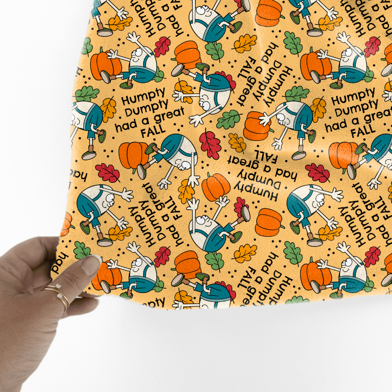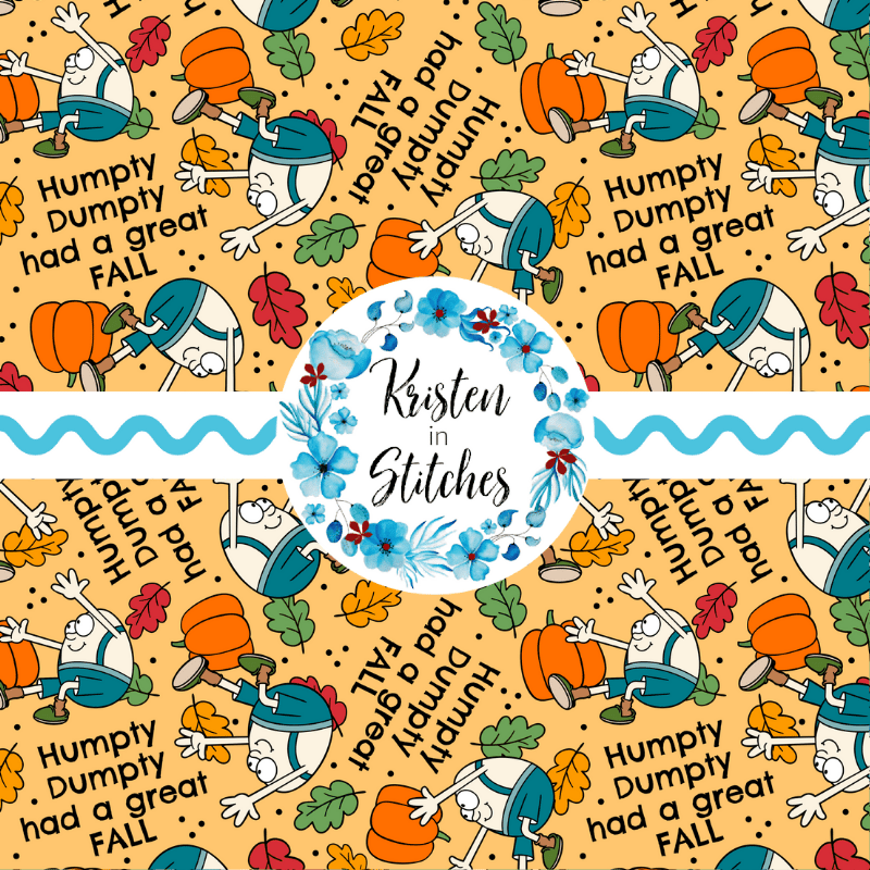Humpty Dumpty had a great fall, with pumpkins and autumn leaves on yellow gold.
