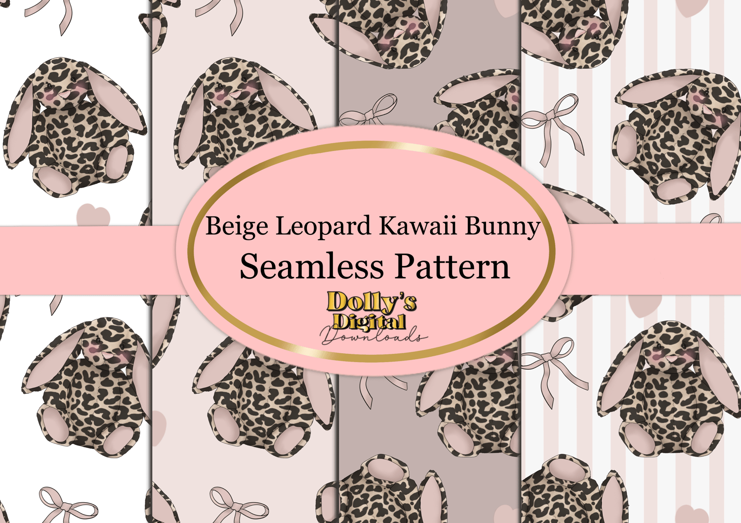 Instant digital download of our Beige Leopard Kawaii Bunny Seamless Pattern (4 PNG’s)