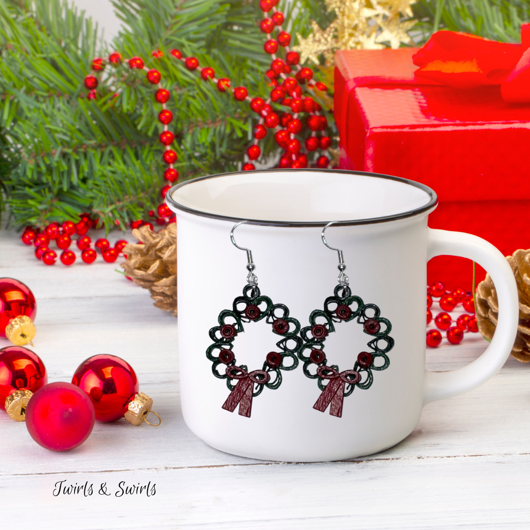 Celebrate the season with these charming wreath earrings, a joyful nod to the timeless Christmas tradition! Each delicate wreath is hand-rolled from paper and adorned with tiny red berries and a sweet red bow at the bottom—capturing the warmth and welcome of the holidays in miniature form. They’re perfect for everything from decorating the tree to attending Christmas gatherings. These earrings are a little reminder to carry the spirit of “Merry & Bright” wherever you go.