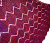 Zigzagging columns of lace float through cushy garter stitch while additional increases and decreases create a zigzag edge along the bottom.