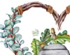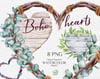 Boho wreaths & wooden hearts with feathers & exotic leaves