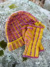 The hat is written in six sizes (castons of 80, 88, 96, 104, 112, and 120 stitches), and you should feel free to adjust your gauge a bit to fine tune the fit of the hat. Just be sure that you’re working at a gauge that gives you a fabric you like with your chosen yarns!