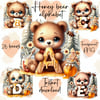 26 beautiful honey bears, each with a letter of the alphabet. A to Z. 26 PNG files suitable for sublimation, print. Ideal for nursery decor, clothing, mugs, frames, greetings cards etc.